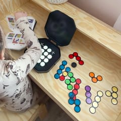 Gra Logiczna "Ułóż wzór" od marki WOOPIE to innowacyjna gra logiczna, która nie tylko dostarcza mnóstwo zabawy, ale także doskonale rozwija umiejętności poznawcze i manualne u dzieci. To idealna łamigłówka dla każdego, kto lubi wyzwania intelektualne i chce rozwijać swoje umiejętności w zakresie logicznego myślenia, koncentracji oraz percepcji kolorów. Gra została zaprojektowana z myślą o stymulacji mózgu – poprzez różnorodne wyzwania, mieszanie kolorów i kreatywne układanie puzzli, dziecko uczy się, jak radzić sobie z problemami, rozwija wyobraźnię przestrzenną i uczy się planowania swoich ruchów. Podświetlana plansza sprawia, że gra staje się jeszcze bardziej wciągająca, a mieszanie kolorów dodaje nowy poziom trudności, który z pewnością zafascynuje młodych odkrywców. Jest to idealny prezent dla każdego dziecka aby trenowało swój umysł i rozwijało logiczne myślenie.