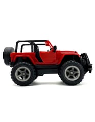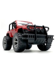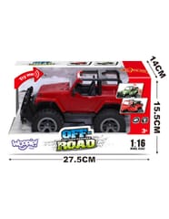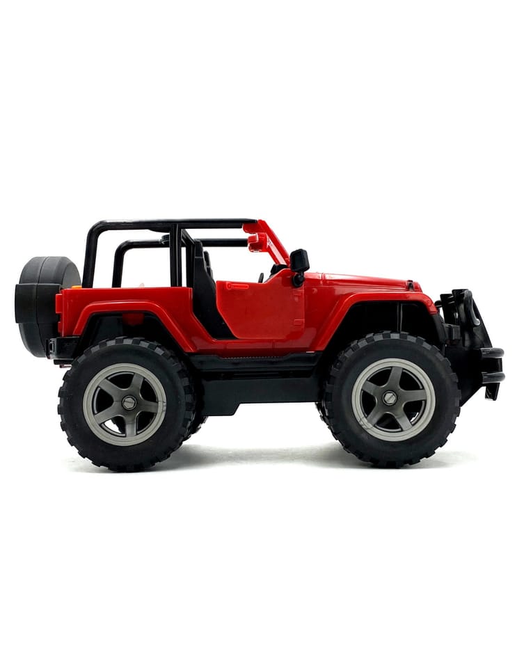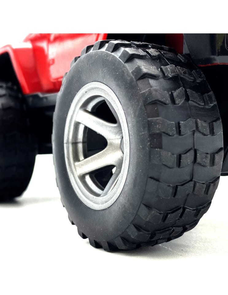 Czerwony Samochód Terenowy Jeep od renomowanej marki WOOPIE to idealna propozycja dla każdego małego fana motoryzacji. Pojazd został wykonany w skali 1:16, co pozwala na zachowanie licznych detali i realistyczny wygląd. Auto posiada napęd typu friction – wystarczy pchnąć zabawkę do przodu, aby samodzielnie kontynuowała jazdę. Zabawka została wyposażona w gumowy bieżnik na kołach, który zapewnia lepszą przyczepność i cichą zabawę na różnych nawierzchniach. Dodatkową atrakcją są otwierane drzwi oraz realistyczne efekty dźwiękowe i świetlne, które aktywuje się za pomocą czterech kolorowych przycisków umieszczonych na dachu pojazdu.