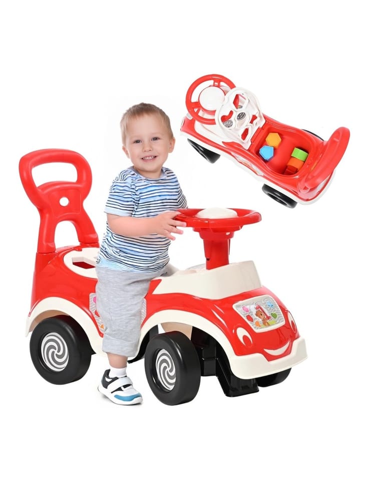 Czerwony jeździk z sorterem i schowkiem marki Woopie to innowacyjne połączenie funkcjonalności i edukacji w jednym produkcie. To doskonałe rozwiązanie dla aktywnych maluchów, które zaczynają stawiać swoje pierwsze kroki i eksplorować świat. Funkcja jeździka pozwala dziecku przemieszczać się samodzielnie, oparcie z tyłu wspiera naukę chodzenia, a wbudowany sorter rozwija zdolności poznawcze i manualne. Dodatkowy atut to schowek pod siedzeniem, w którym dziecko może przechowywać swoje skarby lub klocki do sortera. Frajdę dziecku sprawi klakson wydający dźwięk. Ergonomiczny design, solidne wykonanie i atrakcyjna kolorystyka sprawiają, że dziecko nie tylko chętnie będzie się nim bawić, ale też rozwijać poprzez ruch, naukę i interakcję. Całość wykonana z wytrzymałych i bezpiecznych dla dziecka materiałów z myślą o maksymalnym bezpieczeństwie i wygodzie malucha.