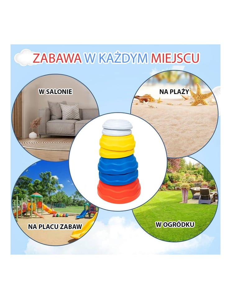 Wprowadź dynamiczną i stymulującą zabawę do świata Twojego dziecka dzięki zestawowi balansujących kamieni od marki Woopie! Te kolorowe "rzeczne kamienie" o zróżnicowanych wysokościach i rozmiarach to doskonałe narzędzie do rozwijania równowagi, koordynacji ruchowej i zdolności motorycznych. Zabawka zachęca do aktywnego pokonywania wyzwań, skakania i balansowania, jednocześnie stymulując zmysł propriocepcji. Dzięki antypoślizgowym podstawkom i solidnej konstrukcji, są bezpieczne i stabilne, idealne do użytku zarówno w domu, jak i na zewnątrz – w ogrodzie, na placu zabaw czy nawet na piasku. To świetny sposób na połączenie zabawy z nauką i treningiem!