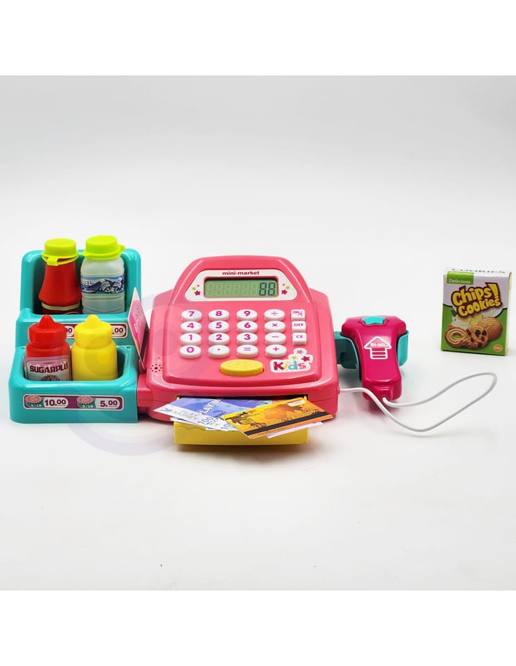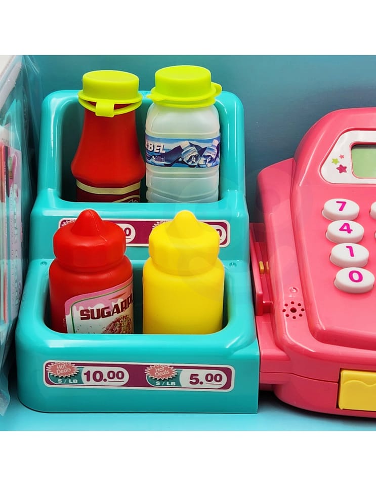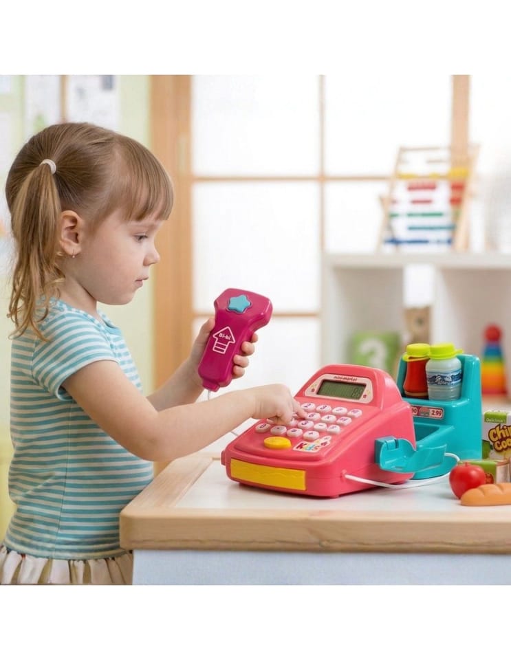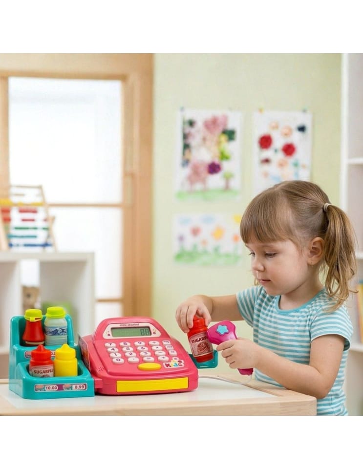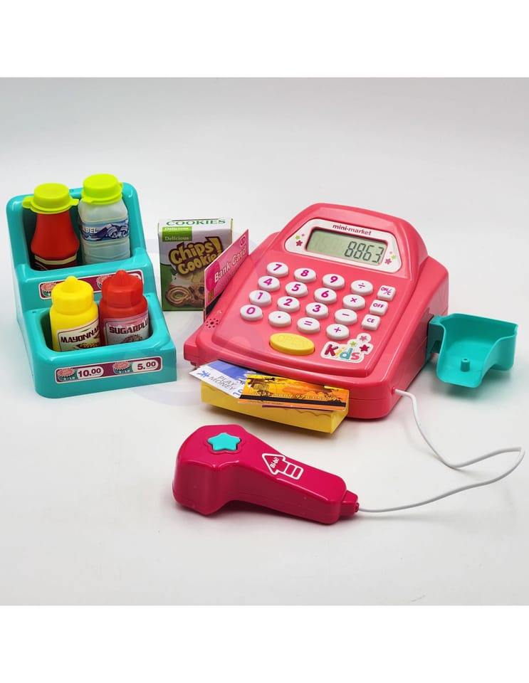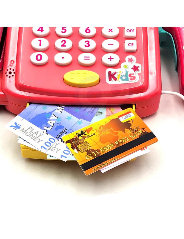 - - kasę sklepową z kalkulatorem i otwieraną kasetka na przechowywanie pieniążków
