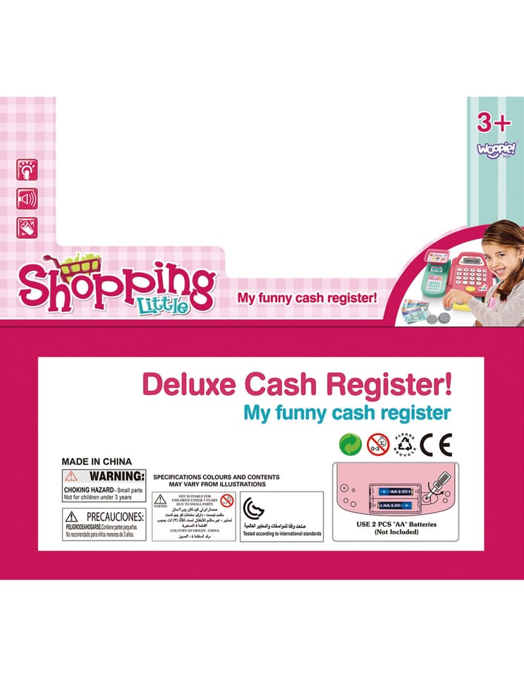 Kasa sklepowa z półką od marki WOOPIE idealna propozycja na prezent dla dziecka, która przeniesie dziecięce zabawy na wyższy poziom! Mali sprzedawcy mogą wybrać produkty, zeskanować je za pomocą skanera wydającego realistyczne dźwięki i podliczyć zakupy na prawdziwym kalkulatorze. Klientów czeka emocjonujący wybór – czy zapłacić kartą, czy monetami?