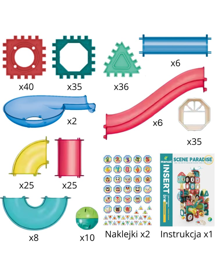 - - Łącznie 228 różnorodnych magnetycznych elementów konstrukcyjnych i elementów toru kulkowego