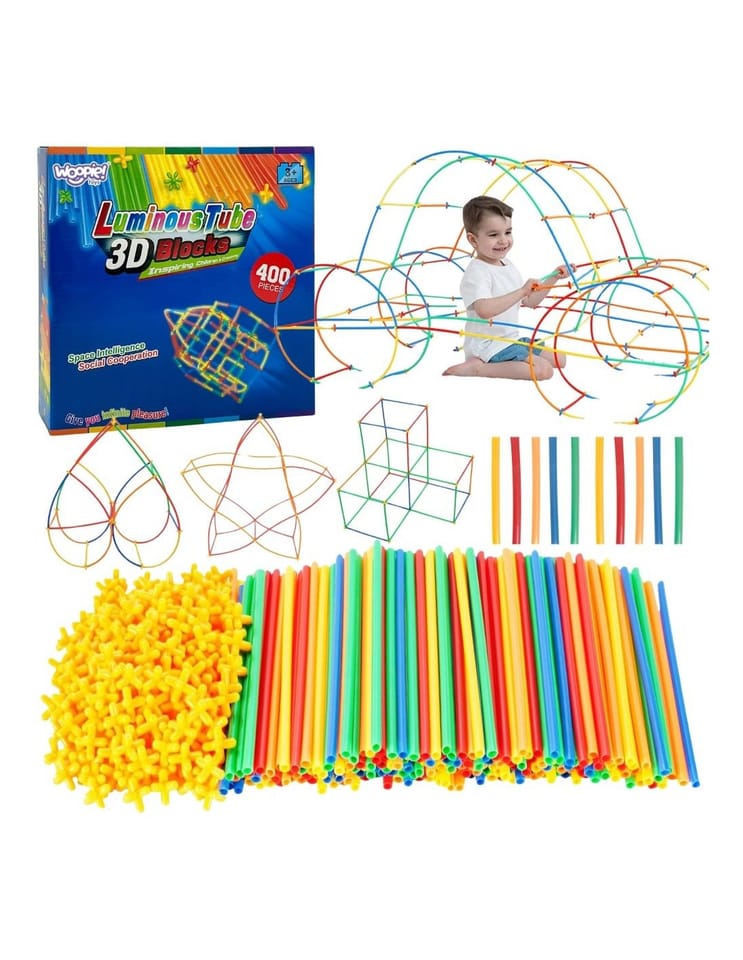 Odkryj świat nieograniczonej wyobraźni z zestawem świecących słomek konstrukcyjnych od Woopie Ten innowacyjny komplet 400 kolorowych, świecących w ciemności rurek i łączników pozwoli Twojemu dziecku budować fantastyczne pojazdy, konstrukcje, roboty i wiele innych kreatywnych projektów. Zabawka zachwyca nie tylko efektownym wyglądem, ale także pobudza wyobraźnię i rozwija umiejętności manualne.
