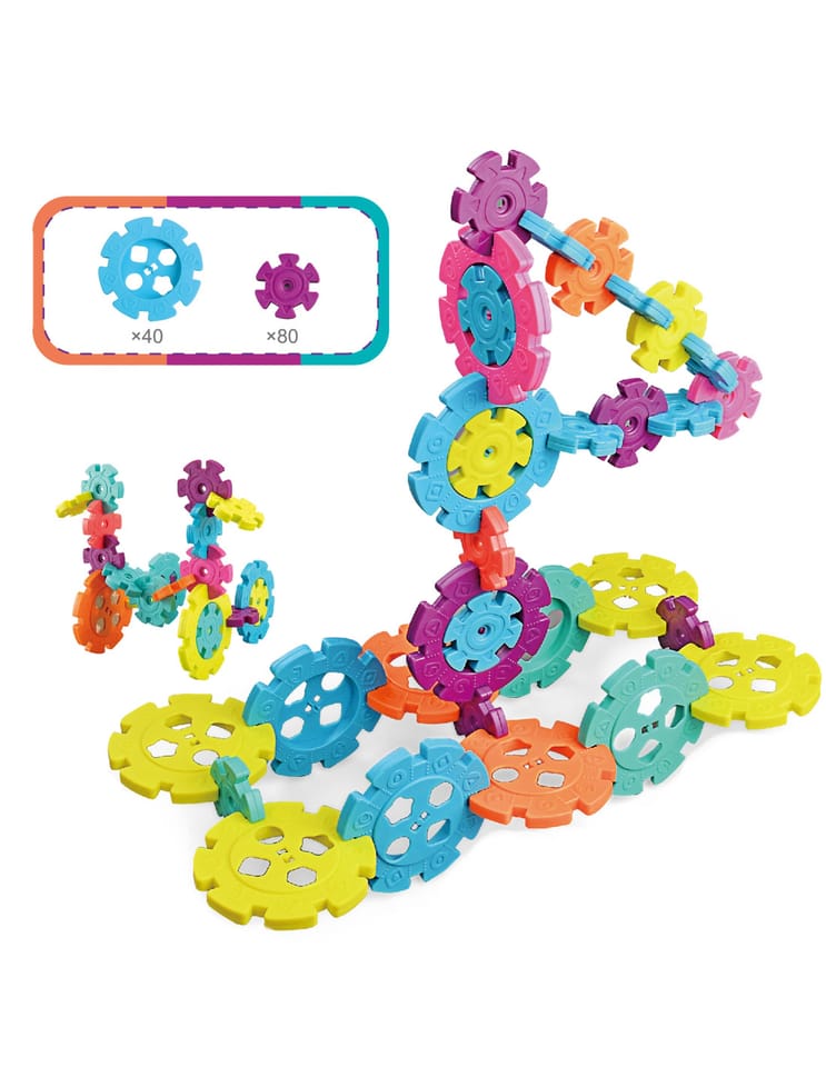 - - zestaw zawiera 120 elementów, w których skład wchodzi 40 dużych i 80 małych klocków,