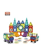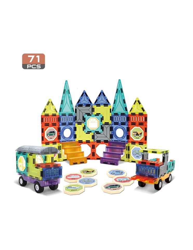 Zestaw magnetycznych klocków konstrukcyjnych 3D to idealna propozycja dla każdego małego budowniczego. Zabawka pozwala na tworzenie różnorodnych konstrukcji płaskich i przestrzennych, od fantazyjnych zamków po dynamiczne pojazdy. Elementy łączą się ze sobą za pomocą silnych magnesów, co zapewnia stabilność budowli. W komplecie znajdują się również edukacyjne naklejki z motywami pojazdów (m.in. autobus, samochód, statek), które dodatkowo urozmaicają zabawę. Przejrzyste, kolorowe kształty i bezpieczne krawędzie gwarantują wciągającą rozrywkę, którą można wykorzystać nawet do prostej gry w domino.