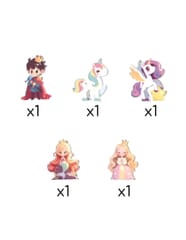 - - Zawiera kolorowe figurki bohaterów i jednorożców.