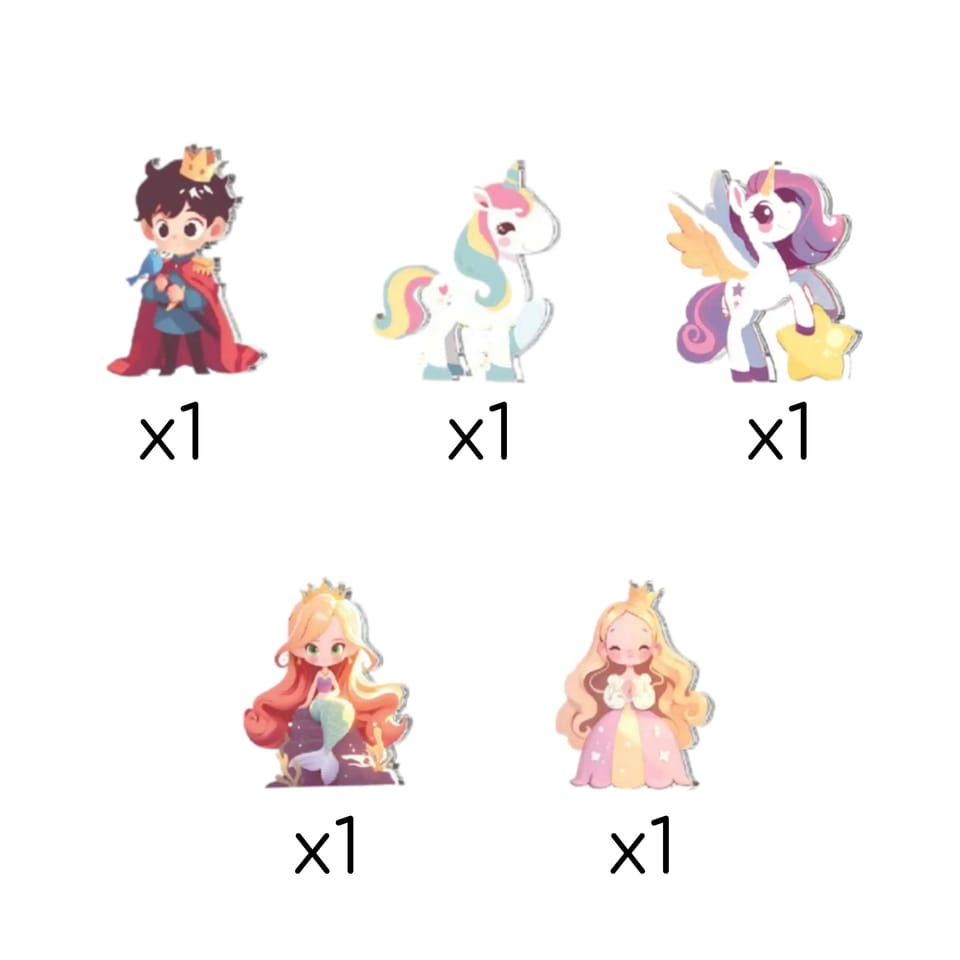 - - Magnetyczne figurki jednorożców, księżniczki i księcia