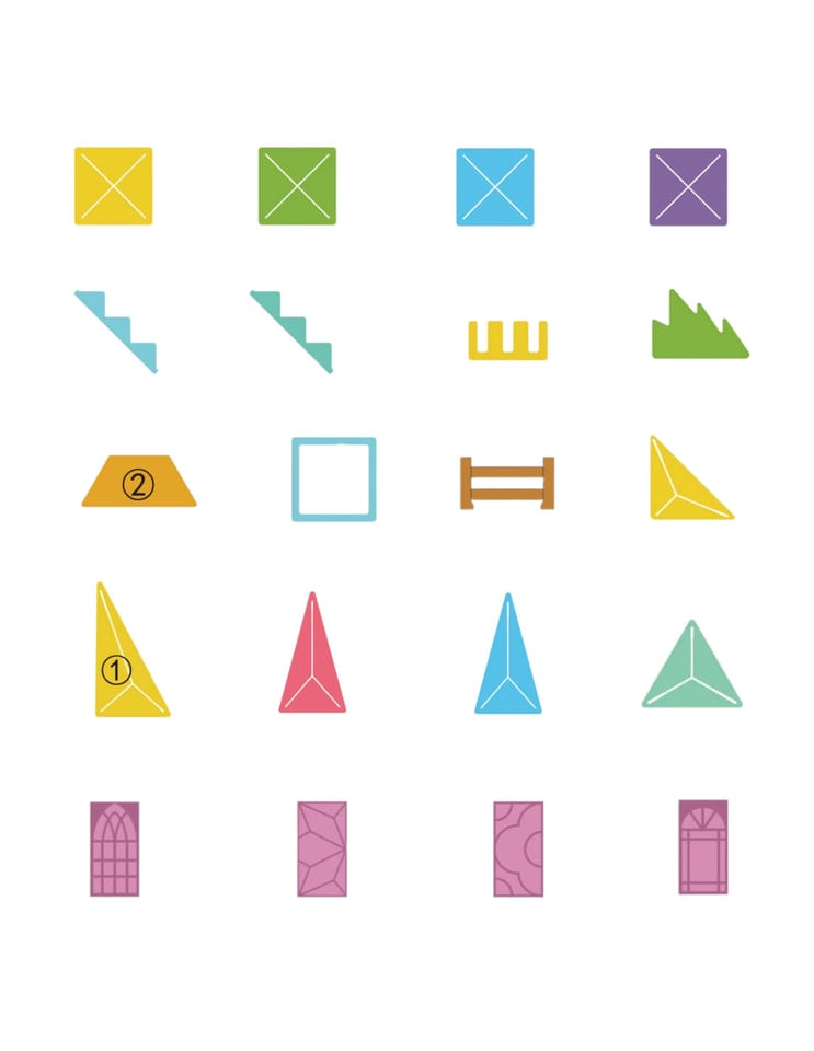 - - 47 magnetycznych klocków (w tym figurki plotki, schody)
