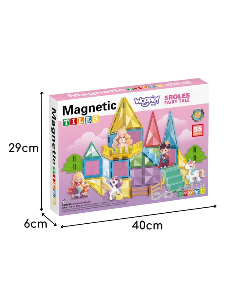Ten unikatowy zestaw klocków magnetycznych od marki Woopie zabierze Twoje dziecko w świat kreatywnej zabawy i baśniowych opowieści! Dzięki 55 kolorowym elementom, takim jak magnetyczne płytki, schody i płotki, oraz uroczym figurkom, Twoja pociecha może stworzyć magiczny zamek dla księżniczki, księcia i jednorożców. Budowanie z magnetycznych klocków rozwija zdolności manualne, wyobraźnię i myślenie przestrzenne, a zabawa figurkami zachęca do odgrywania ról.
