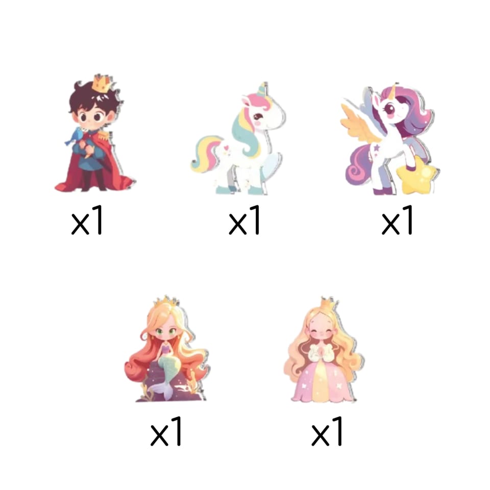 - - Magnetyczne figurki jednorożców, księżniczki i księcia