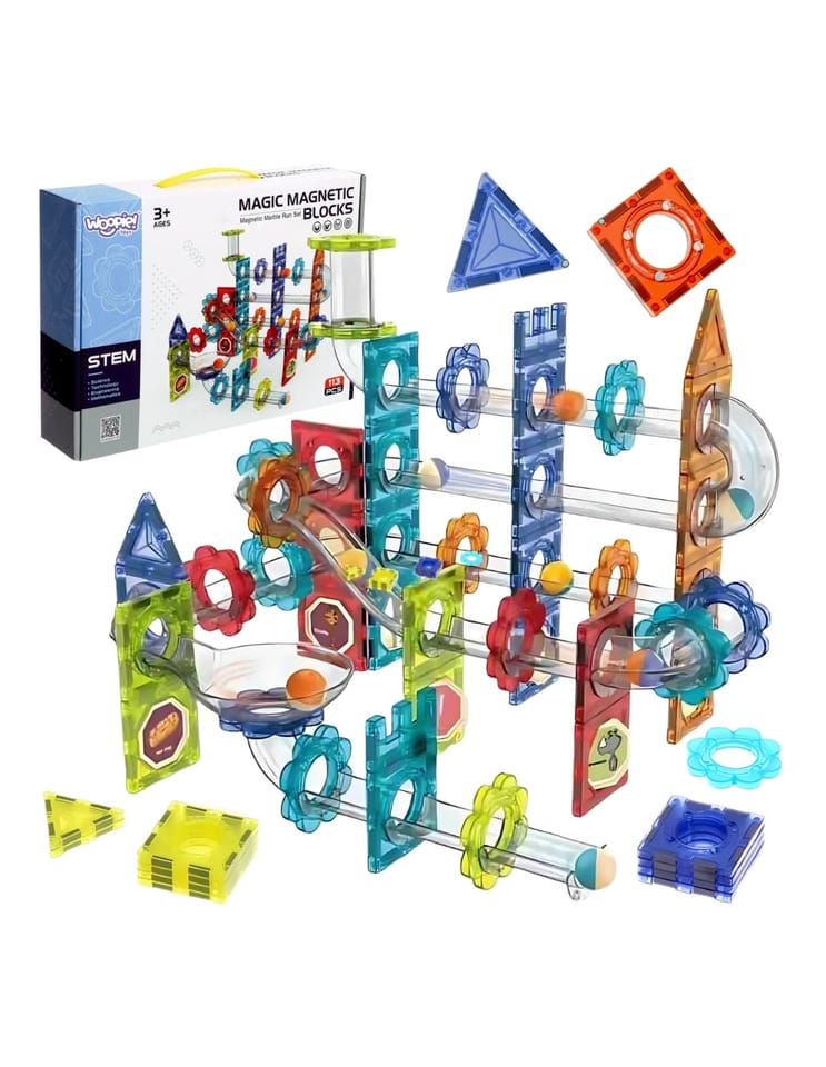 Odkryj prawdziwy raj kreatywności i inżynierii z zestawem magnetycznych klocków konstrukcyjnych 3D od marki Woopie! Ten imponujący zestaw, składający się ze 113 elementów, pozwala na budowanie rozbudowanego, wielopoziomowego toru kulkowego oraz fantastycznych konstrukcji przestrzennych. Przezroczyste, magnetyczne płytki oraz różnorodne elementy toru w intensywnych barwach gwarantują godziny wciągającej zabawy. Podczas konstruowania dziecko uczy się podstaw fizyki oraz zasad grawitacji w praktyce. To idealny sposób na rozwijanie logicznego myślenia, wyobraźni przestrzennej i zdolności manualnych. Ten zestaw to prawdziwa brama do świata nieograniczonych możliwości konstrukcyjnych!