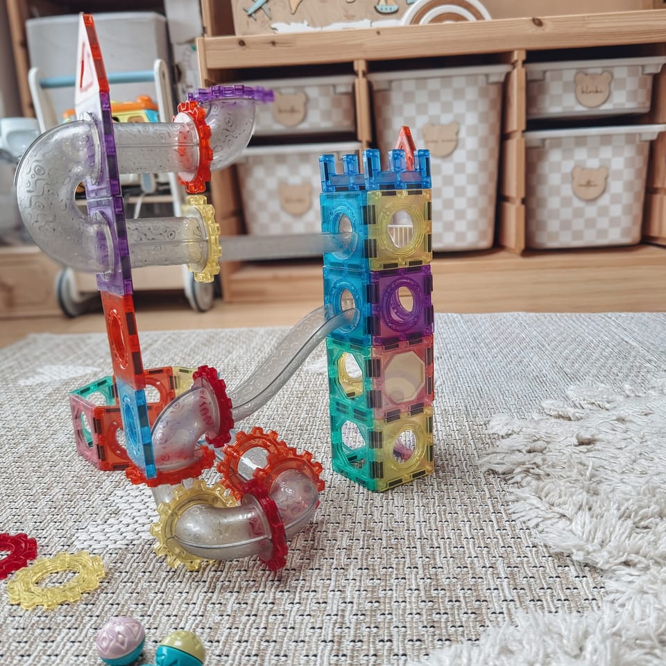 • - Magnetyczne klocki konstrukcyjne 3D, modułowy tor kulkowy