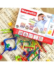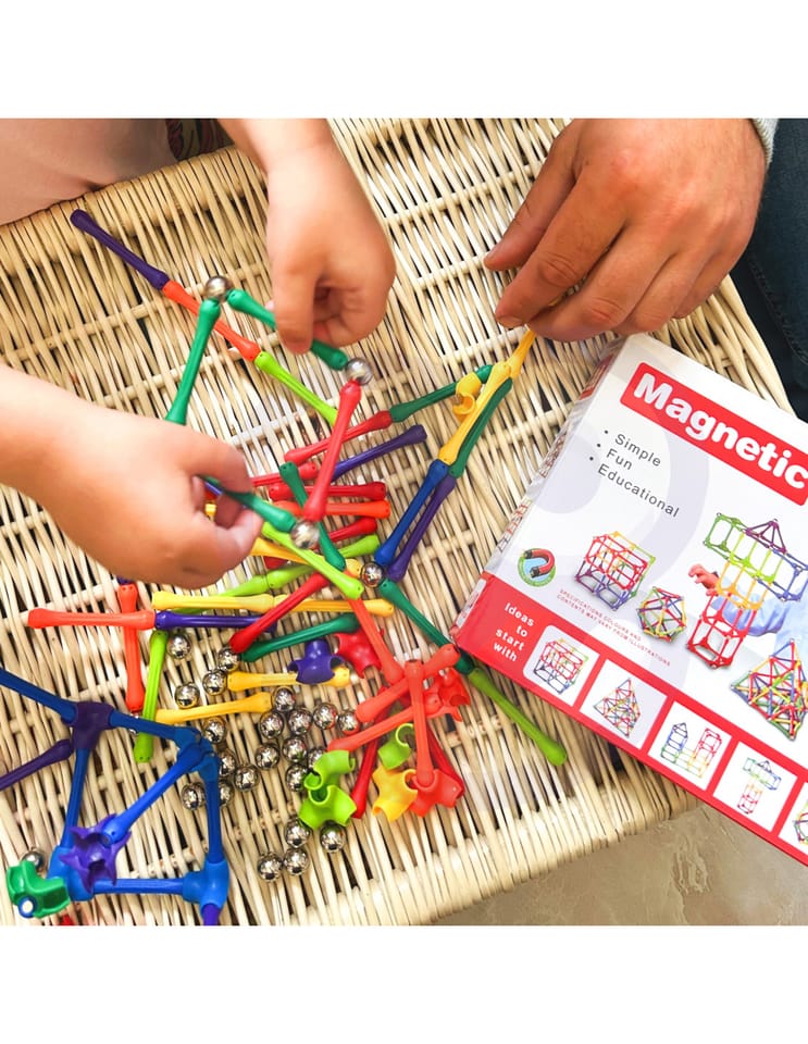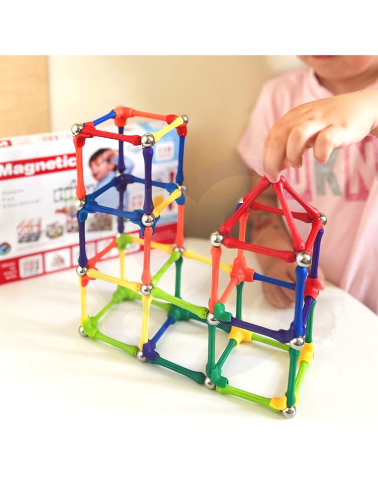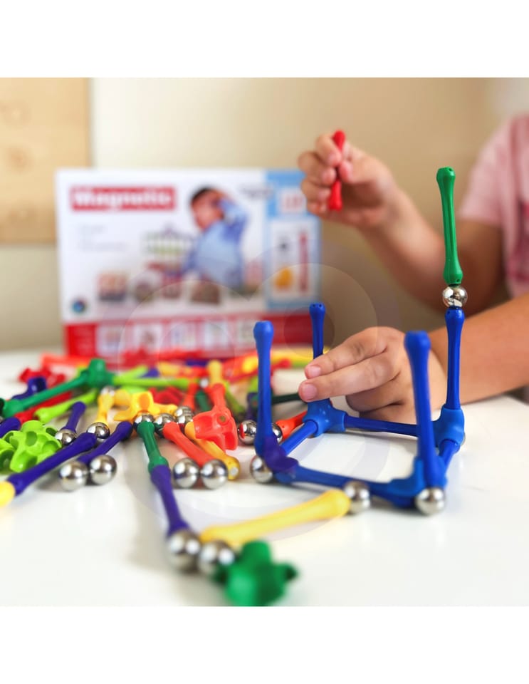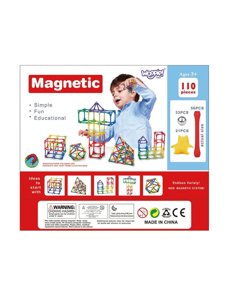 Zestaw klocków magnetycznych od marki WOOPIE łączy ze sobą zabawę i naukę! Wystarczy, że młody konstruktor połączy ze sobą elementy i zacznie tworzyć wymyślne budowle oraz wiele innych układów np. figury geometryczne czy litery lub liczby, a nawet działania matematyczne! Ograniczeniem jest tylko wyobraźnia. Zestaw zawiera 110 elementów oraz kolorowe inspiracje wraz z instrukcja składania do pomocy maluchowi. Układanie konstrukcji z klocków rozwija u dziecka kreatywność, zdolności manualne ("małą motorykę"), wyobraźnie przestrzenną oraz koncentrację.