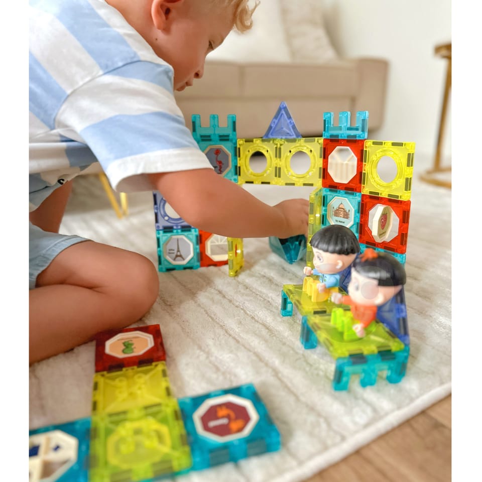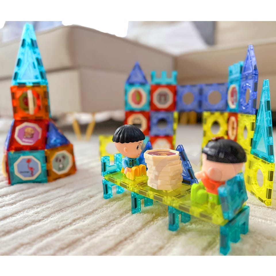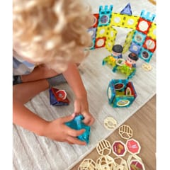 Klocki Magnetyczne od marki WOOPIE zwrócą uwagę i zafascynują Twoje dziecko. Klocki w bardzo łatwy sposób łączą się ze sobą, można z nich stworzyć wspaniałe konstrukcje np. zamek. Do zestawu oprócz klocków, naklejek i instrukcji dołączone są 2 figurki dzieci. Samo budowanie konstrukcji rozwinie u dziecka logiczne myślenie, wyobraźnie, kreatywność oraz pomoże mu skoncentrować się podczas tworzenia. Przez układanie klocków dziecko poznaje kształty i kolory oraz ćwiczy zdolności manualne tzw. motorykę małą.