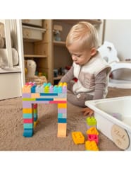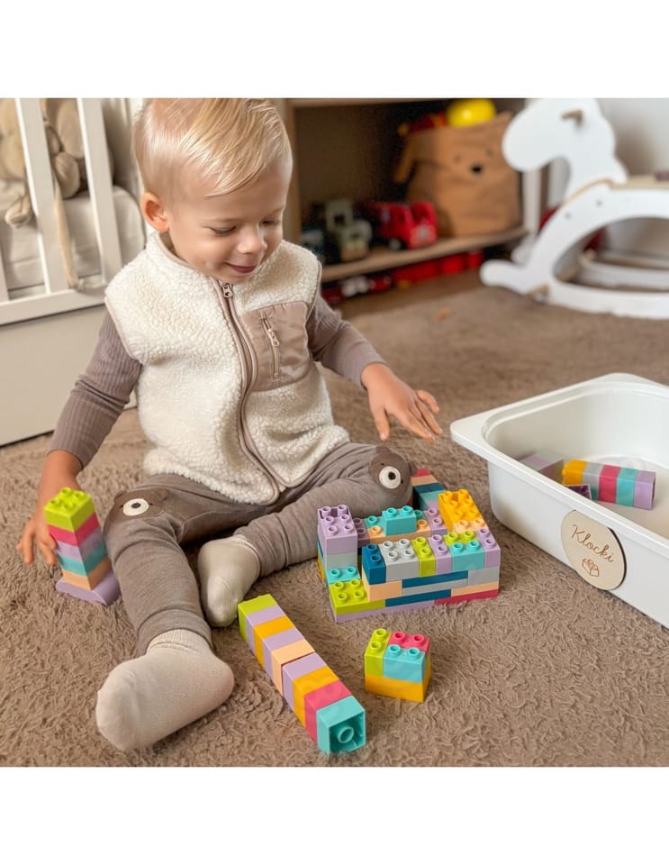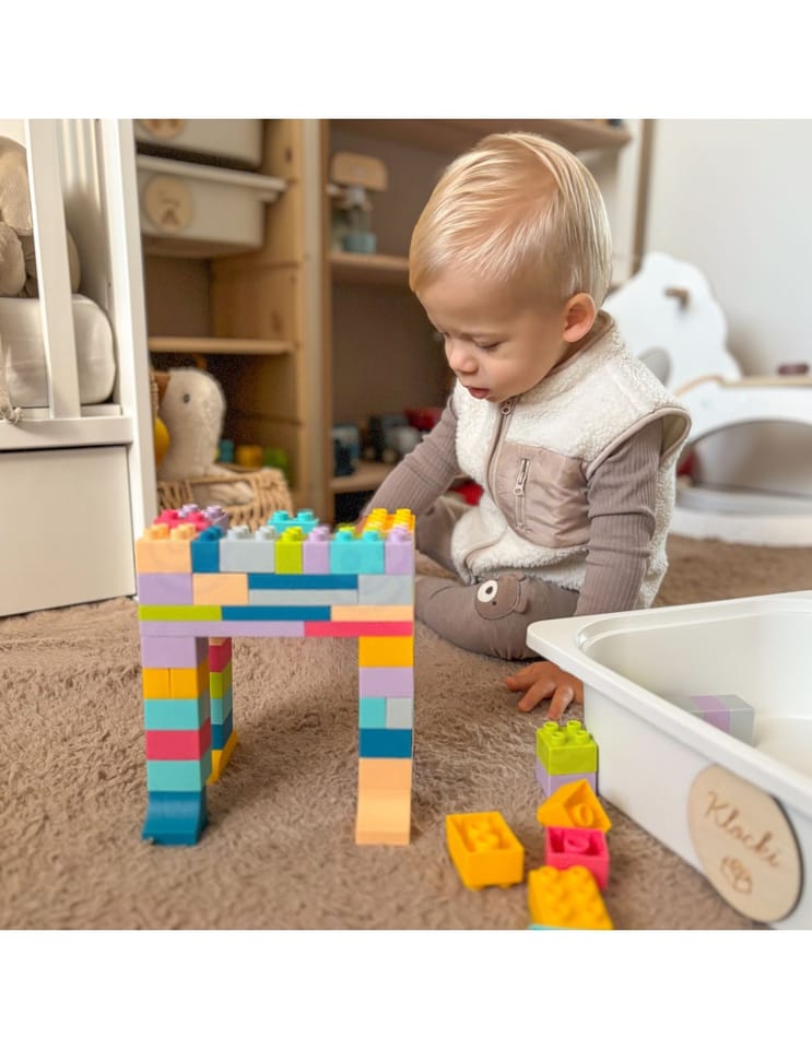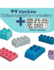 Podaruj swojemu dziecku kreatywną zabawę pełną radości i nauki z zestawem miękkich klocków Soft Blocks od marki Woopie! Dzięki aż 99 kolorowym elementom maluch może tworzyć własne budowle, pojazdy i fantastyczne konstrukcje. Bezpieczne, miękkie tworzywo sprawia, że klocki są odpowiednie już dla najmłodszych dzieci. Zestaw zapakowany jest w praktyczne, zamykane pudełko z uchwytem, dzięki czemu łatwo go przechowywać i zabierać w podróż. To idealny prezent, który rozwija wyobraźnię i zdolności manualne dziecka!