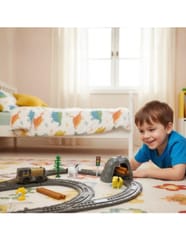 - - Lokomotywa zasilana jest na baterie, co zapewnia mobilność i bezpieczną zabawę bez kabli.
