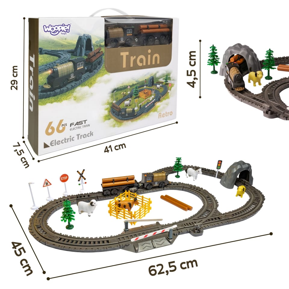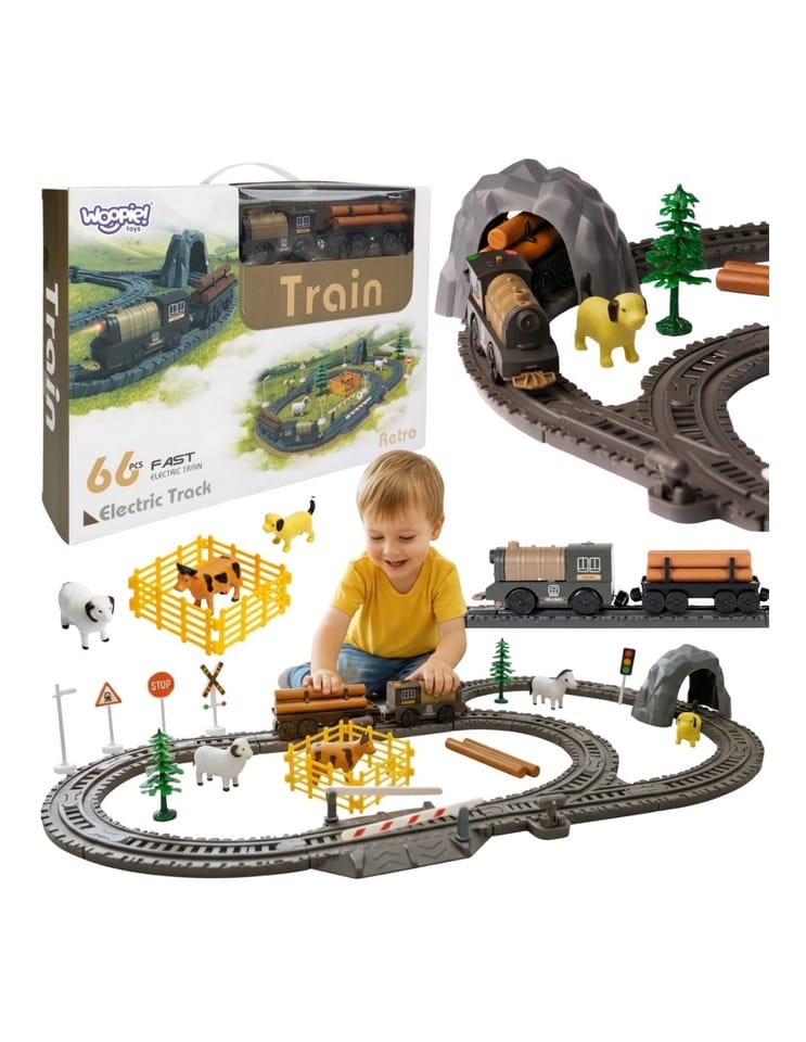 Pozwól swojej rodzinie wyruszyć w fascynującą podróż z elektryczną kolejką XL od marki WOOPIE! Zestaw zawiera aż 66 elementów — to prawdziwa gratka dla małych i dużych entuzjastów kolei. Lokomotywa zasilana na baterię porusza składem oraz posiada światełko, co nadaje zabawie realizmu. Tory zostały zaprojektowane ze zwrotnicami, co umożliwia zmianę kierunku jazdy i tworzenie ciekawych układów tras. Kolorowe fragmenty torowiska i skład zachęcają do kreatywnego układania i eksperymentowania, rozwijając wyobraźnię dziecka. Dzięki temu zestawowi zabawa łączy w sobie naukę i rozrywkę — maluch rozwija zmysł przestrzenny i myślenie techniczne, jednocześnie ciesząc się długimi godzinami zabawy.