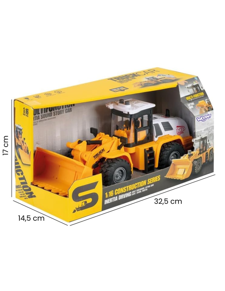 Ładowarka budowlana 1:16 od marki Woopie pozwoli twojemu dziecku wcielić się w rolę operatora prawdziwej maszyny budowlanej! Ta ładowarka to realistycznie odwzorowana zabawka, która zachwyci każdego małego fana pojazdów ciężkich. Realistyczny wygląd, ruchome elementy oraz efekty świetlne i dźwiękowe sprawią, że każda zabawa zamieni się w prawdziwą budowlaną przygodę. Solidna konstrukcja i wiele funkcji zapewniają długie godziny kreatywnej rozrywki.