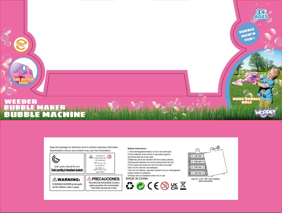 WOOPIE Kosiarka Ręczna Maszyna do Robienia Baniek Mydlanych Różowa