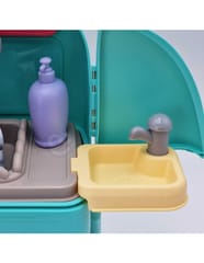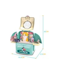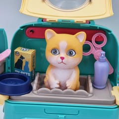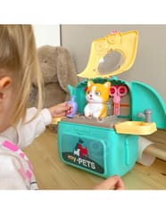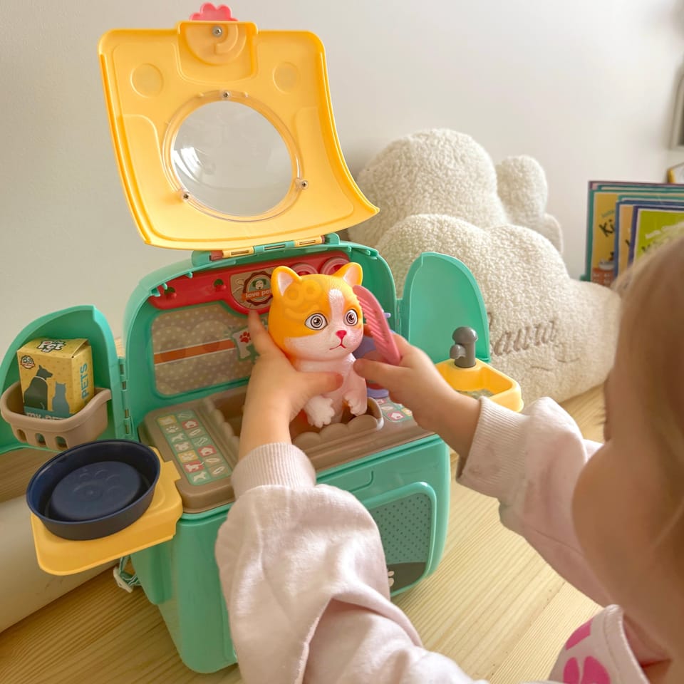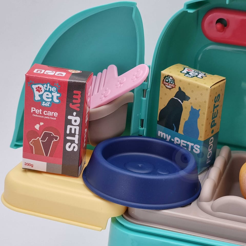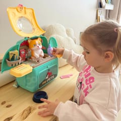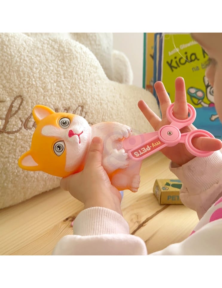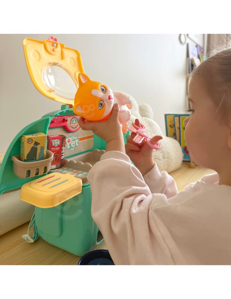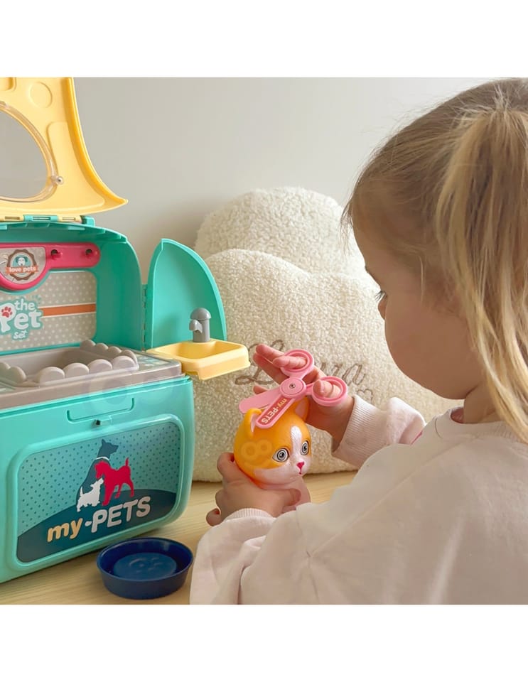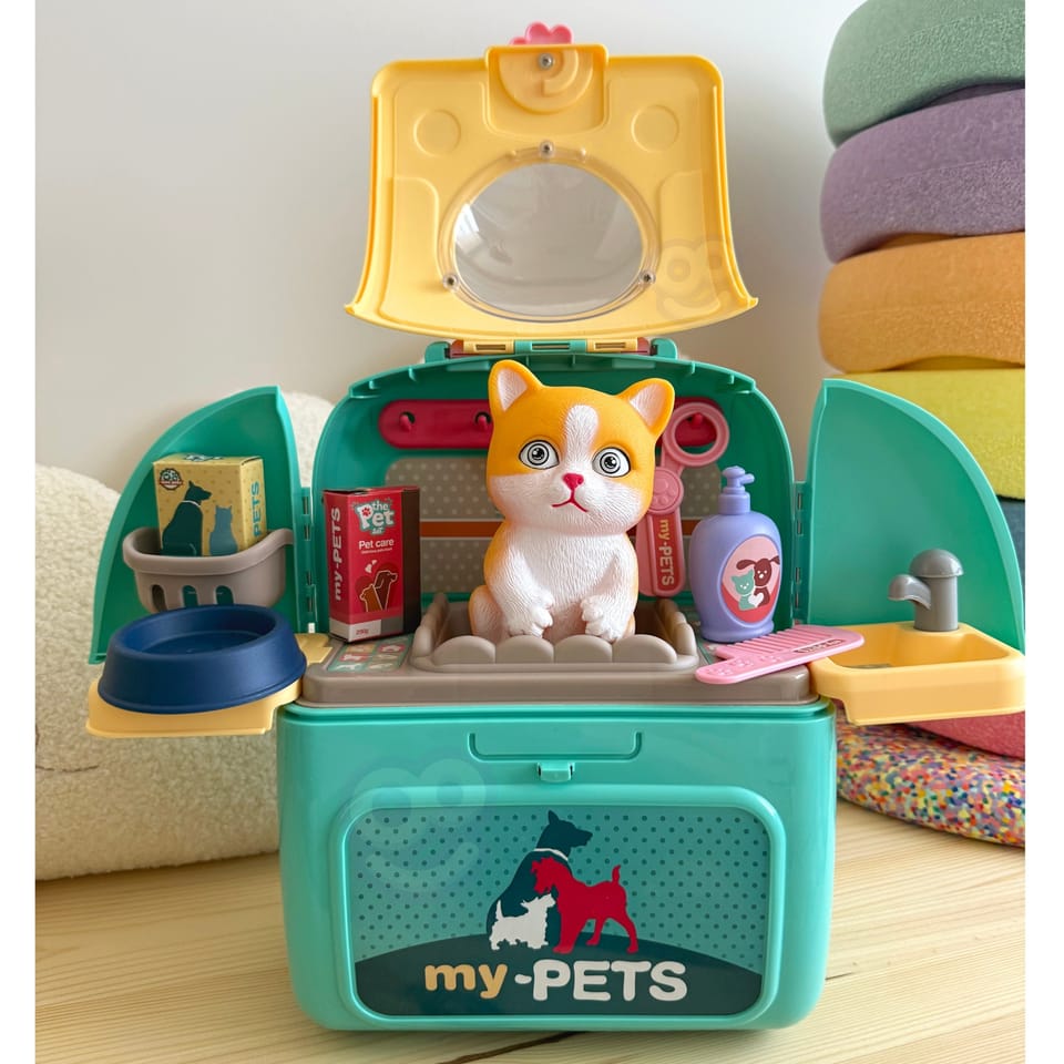 Przenośny Zestaw Pielęgnacyjny dla Kotka od marki WOOPIE pozwoli Twojemu dziecku zadbać o swojego ulubionego pupila. Możesz zabrać wszędzie swojego kota w wygodnym przenośnym plecaku: w podróż, na plac zabaw czy do przedszkola. Plecak posiada uchwyt do podnoszenia oraz specjalne zamknięcie, które nie pozwoli otworzyć się kabinie podczas przenosin i zapewni maksymalne bezpieczeństwo zwierzakowi. Zestaw pielęgnacyjny 2w1 zawiera: figurkę kotka, plecak, pasek (do zakładania kabiny na plecy), miskę, nożyczki, grzebień, koszyk na akcesoria, 2 pudełeczka na karmę, szampon, zlew, kran, półka i wieszak. Zestaw zawiera wszystko co potrzebne do pielęgnacji pupila. Dziecko może umyć i nakarmić swojego kota. Dziecko wcielając się w opiekuna lub weterynarza rozwija swoją wyobraźnie oraz poczucie empatii. Możliwe, że zabawka będzie początkiem do rozwinięcia pasji i drogi do zostania weterynarzem.