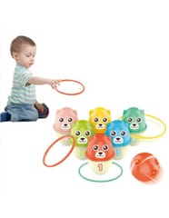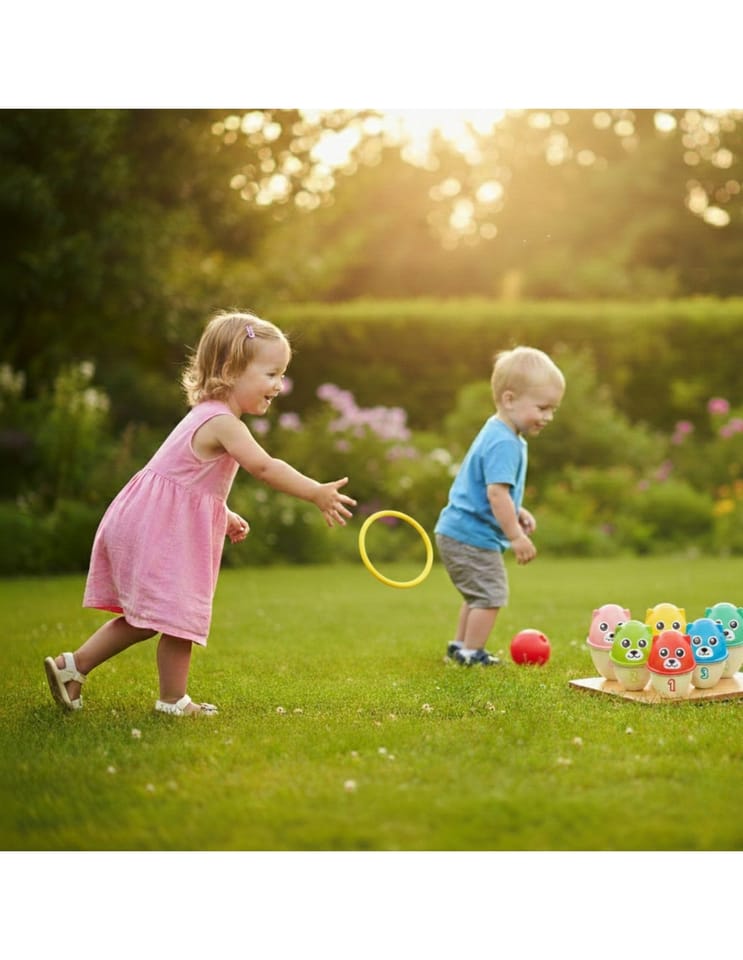 Kręgle dla dzieci Kolorowe Misie od Woopie to innowacyjna, edukacyjna zabawka, która łączy radość z zabawy w kręgle z nauką przez działanie. Zestaw składa się z kolorowych misiów z numerkami, które pełnią rolę kręgli, a także z piłeczek do zbijania i obręczy do rzucania, co daje wiele różnych możliwości zabawy. Każdy miś ma inny kolor i numer, co pozwala dziecku na naukę rozpoznawania barw oraz cyferek. Rzucając piłką lub obręczami na misie, dziecko ćwiczy koordynację ręka–oko, precyzję ruchów oraz planowanie swoich działań. Dzięki atrakcyjnej formie i różnorodnym funkcjom, zestaw doskonale nadaje się zarówno do samodzielnej zabawy, jak i do wspólnego spędzania czasu z rodzicami czy rówieśnikami. Zabawka została wykonana z trwałych, bezpiecznych dla dzieci materiałów, które są przyjemne w dotyku i odporne na uszkodzenia. Miśki można również układać w wieżę, wkładając je jeden w drugi niczym kubeczki. Różne tryby gry – rzucanie obręczami, zbijanie kręgli, liczenie cyferek – sprawiają, że maluch nie tylko świetnie się bawi, ale i intensywnie się uczy. To doskonały prezent dla każdego dziecka, który gwarantuje nie tylko uśmiech, ale także aktywny rozwój zdolności poznawczych, manualnych i społecznych. Idealny do domu, żłobka, przedszkola czy na rodzinne wyjazdy.
