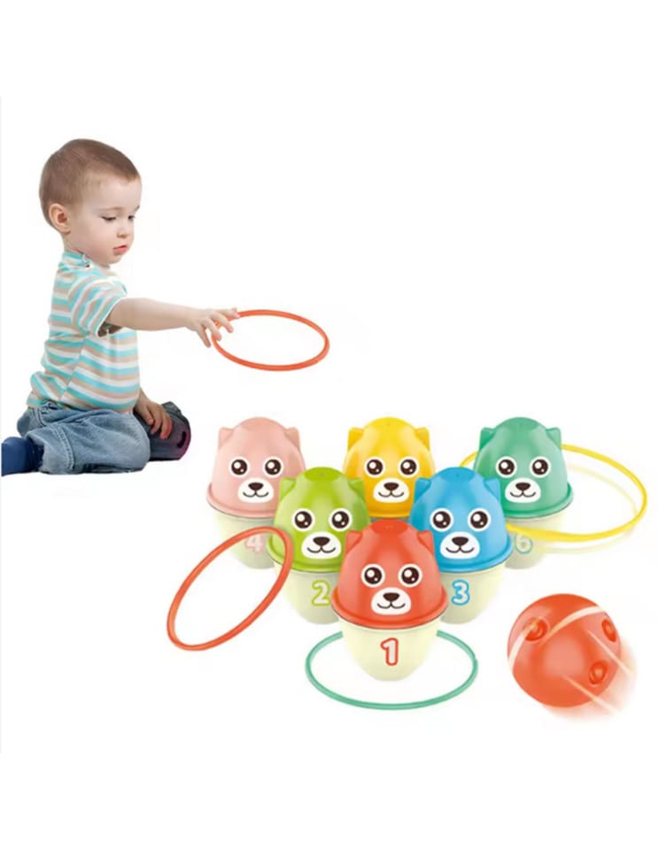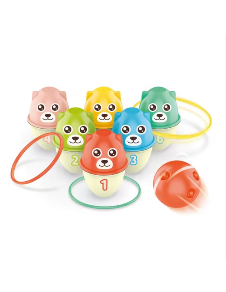 - - Zestaw kręgli – kolorowe misie z numerkami