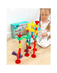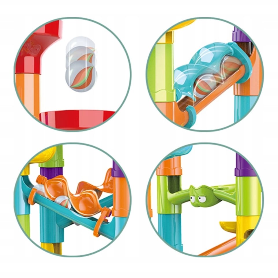 Kulodrom od WOOPIE to spiralny tor zapewniająca niekończącą się zabawę. Ten kolorowy zestaw składa się z wielu różnych kolorowych elementów, które maluch może z łatwością układać jedna na drugiej oraz dowolnie łączyć w wymyślne tory. Dodatkowo z tyłu opakowania znajduje się instrukcja pokazująca przykładowy tor z wykorzystaniem wszystkich elementów. Puszczaj kulki i obserwuj, jak toczą się jedna po drugiej. W zestawie jest aż 113 elementów, w tym np. wyrzutnia i kulki do toru. Rozmiar jest odpowiedni dla małych rączek i pomaga rozwijać koordynację wzrokowo-ruchową.