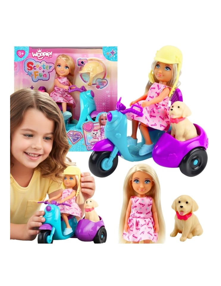 - - Lalka z akcesoriami - skuter, piesek, kask