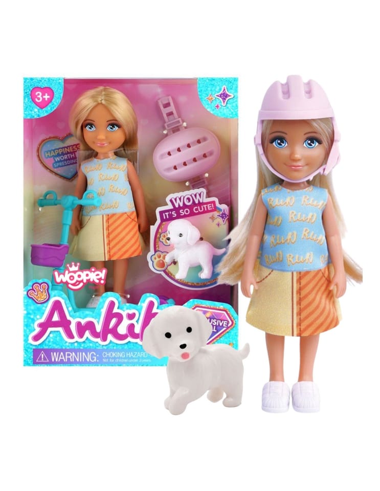 Ta urocza laleczka Ankiki od marki WOOPIE! skradnie serce każdej małej miłośniczki zabawy. Zestaw oferuje mnóstwo możliwości na kreatywne spędzanie czasu, inspirując do tworzenia własnych, wspaniałych historii. Lalka ma modny strój i towarzyszy jej słodki, biały piesek, a dołączone hulajnoga, urozmaici każdą przygodę. To idealny prezent dla dzieci powyżej 3 lat, który zapewni godziny radosnej i rozwijającej zabawy.