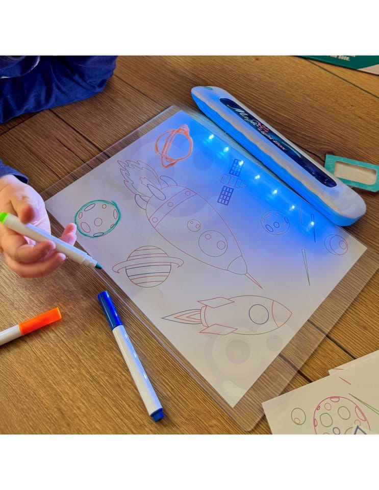 - - Podświetlane szablony sprawiają, że dziecko uczy się dokładności i precyzji podczas rysowania