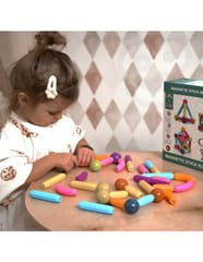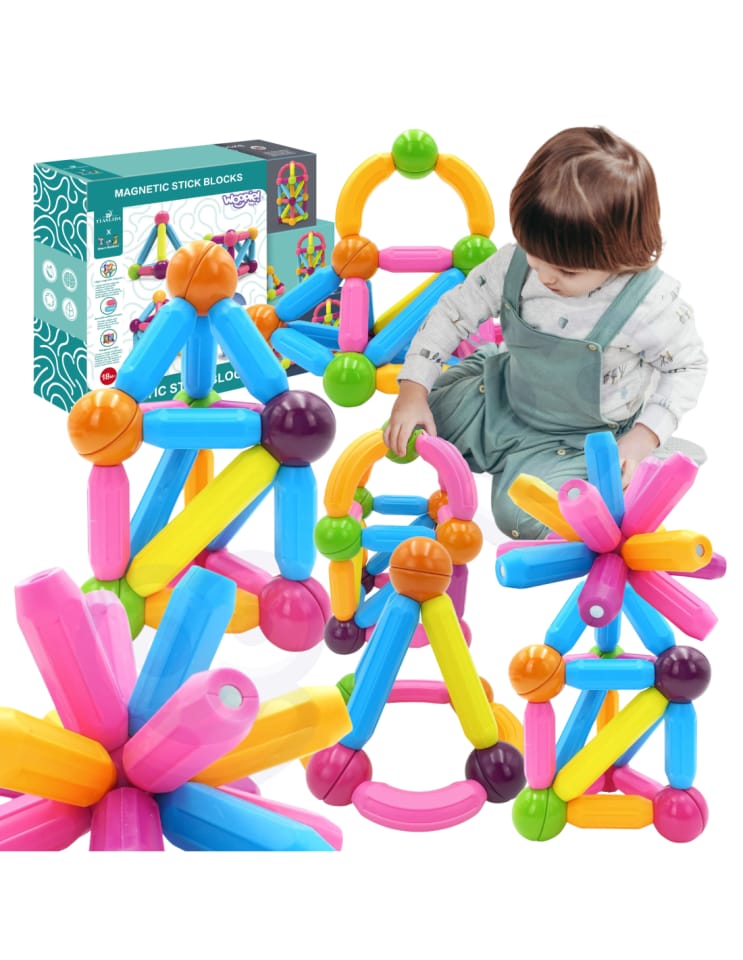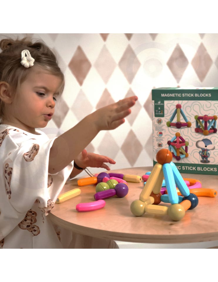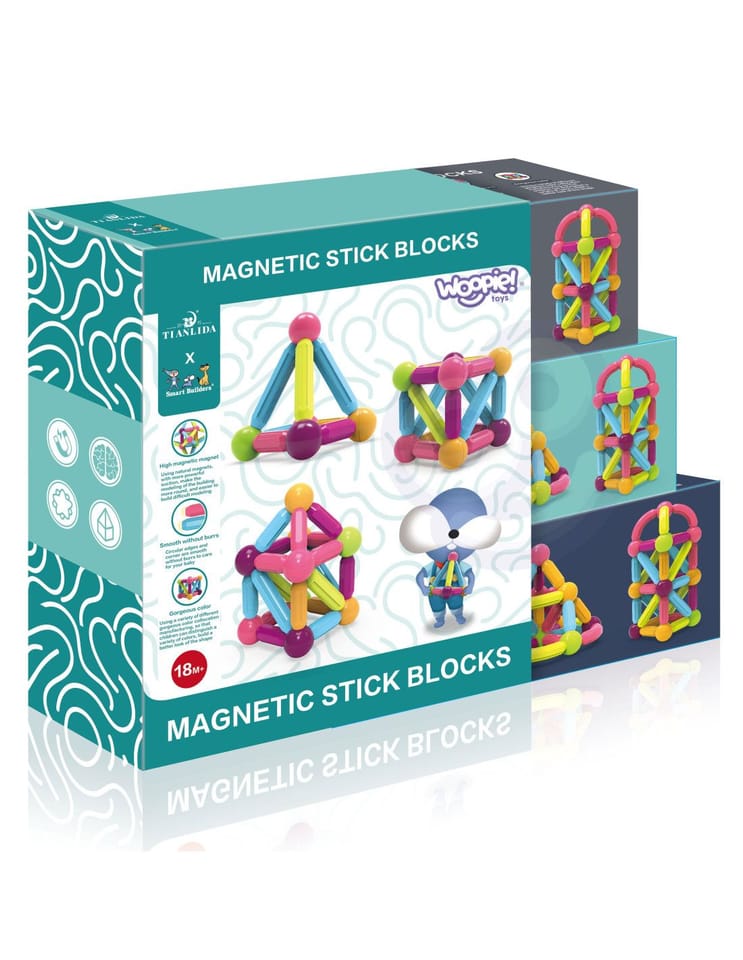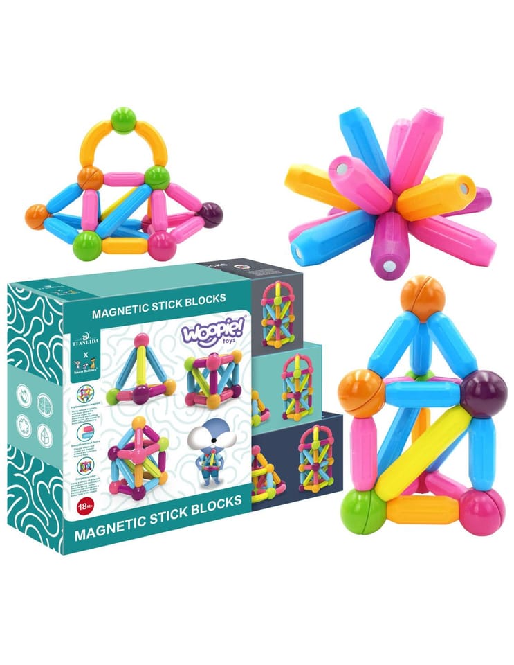 Zestaw grubych klocków magnetycznych od marki WOOPIE łączy ze sobą zabawę i naukę! Wystarczy, że młody konstruktor połączy ze sobą elementy i zacznie tworzyć wymyślne budowle oraz wiele innych układów np. figury geometryczne czy mini domek! Ograniczeniem jest tylko wyobraźnia. Zestaw zawiera 38 elementów. Klocki są grube, różnokolorowe i bezpieczne - idealne dla rączek małych dzieci. Wszystko zapakowane w wygodną skrzyneczkę. Układanie konstrukcji z klocków rozwija u dziecka kreatywność, zdolności manualne ("małą motorykę"), wyobraźnię przestrzenną oraz koncentrację.