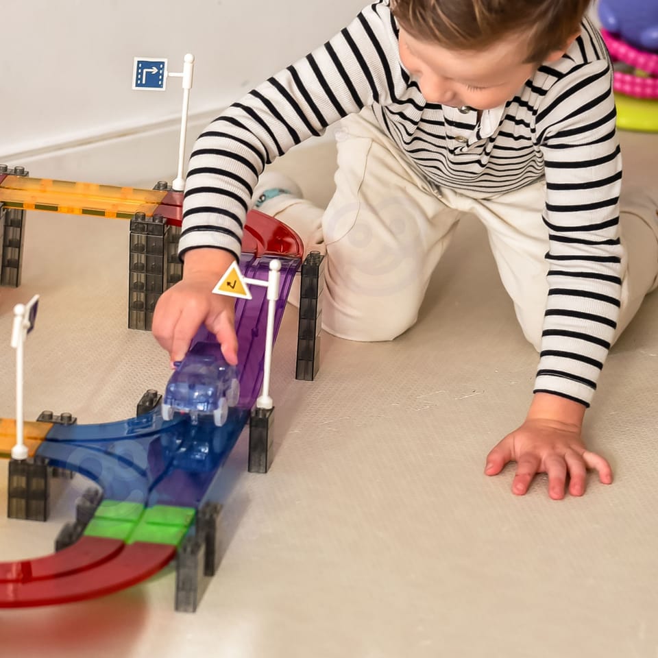 Magnetyczny Tor Wyścigowy marki Woopie to wyjątkowa zabawka, która rozbudzi kreatywność każdego dziecka i zamieni zabawę w niesamowitą przygodę pełną świateł i kolorów! Dzięki łatwym do łączenia magnetycznym elementom maluchy mogą samodzielnie budować różnorodne, wielopoziomowe tory, po których jeździ świecące terenowe autko. Przezroczyste, barwne części i efektowne światła LED sprawiają, że zabawa przyciąga uwagę oraz daje mnóstwo radości zarówno w dzień, jak i wieczorem.