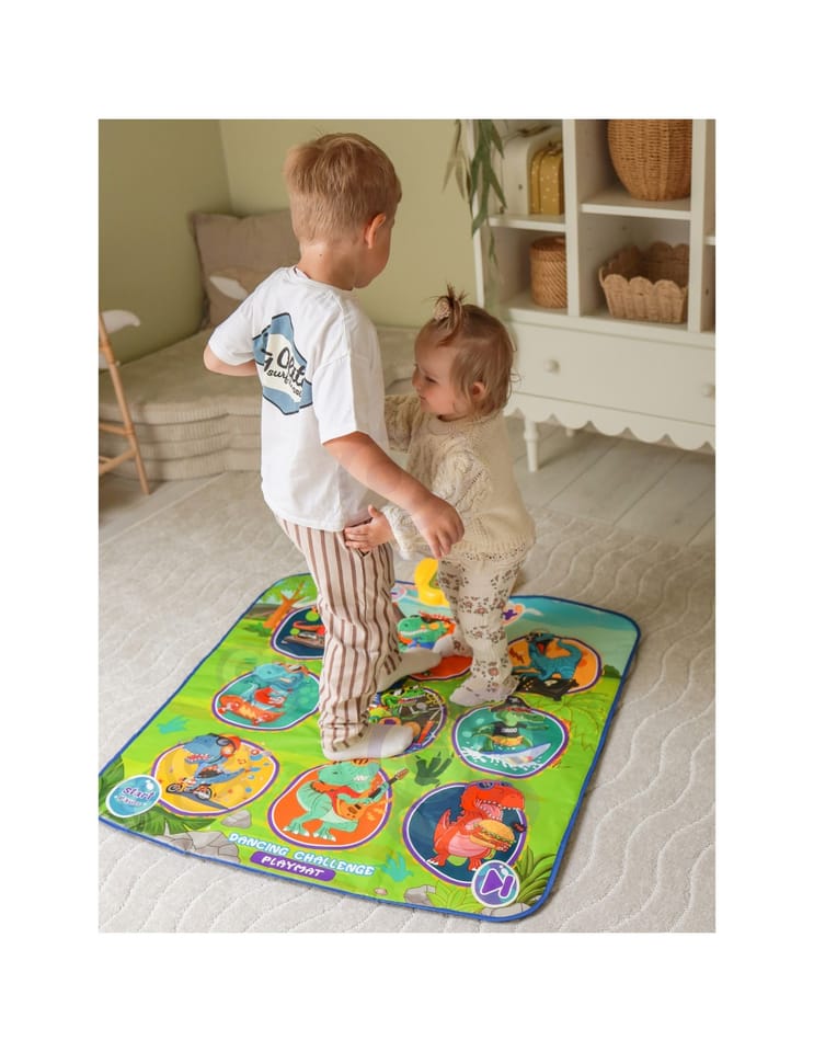 Mata Muzyczna Dinozaury Zręcznościowa Gra Taneczna to interaktywna zabawka muzyczno-ruchowa, która zachęca dzieci do aktywności fizycznej i rozwija ich koordynację ruchową oraz poczucie rytmu. Kolorowy motyw dinozaurów i intuicyjna obsługa sprawiają, że mata jest doskonałym wyborem dla każdego małego miłośnika tańca i muzyki.