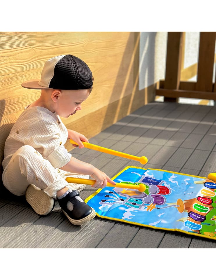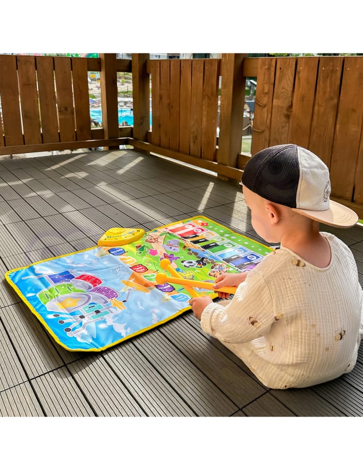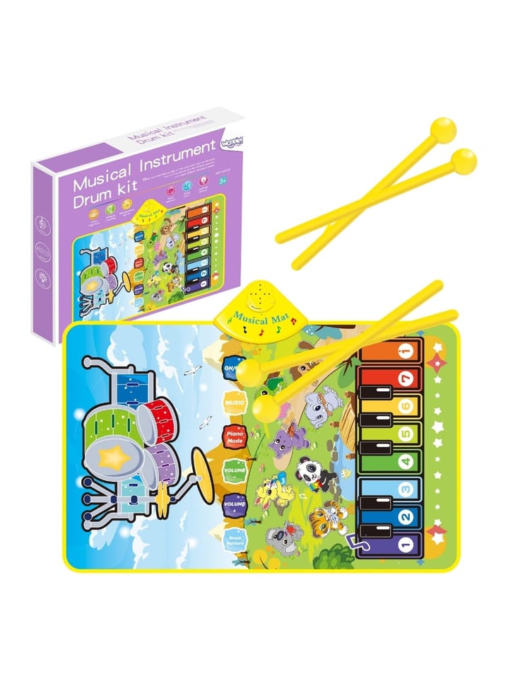 WOOPIE Mata Muzyczna Zwierzątka Interaktywne Pianino I Perkusja 2w1 to innowacyjna zabawka, która w wyjątkowy sposób łączy pasję do muzyki z aktywnością fizyczną. Ta dwustronna mata oferuje dzieciom aż dwie różne formy artystycznej ekspresji: z jednej strony znajduje się klasyczna klawiatura pianina, a z drugiej kompletny zestaw perkusyjny. Dzięki takiemu rozwiązaniu, maluch może poczuć się jak prawdziwy multiinstrumentalista, tworząc własne melodie lub wybijając rytm na bębnach. Interaktywna mata została zaprojektowana z myślą o małych artystach, którzy uwielbiają ruch. Zabawka reaguje na dotyk rączek i stóp, co zachęca do tańca i ćwiczeń koordynacyjnych. Produkt oferuje możliwość nagrywania autorskich kompozycji, co pozwala dziecku odsłuchać swoje dzieła i rozwijać poczucie rytmu. Dodatkowo, funkcja regulacji głośności sprawia, że zabawa może być dostosowana do warunków domowych, zapewniając komfort wszystkim domownikom.