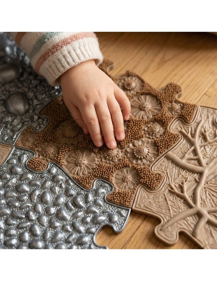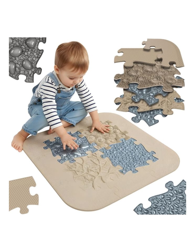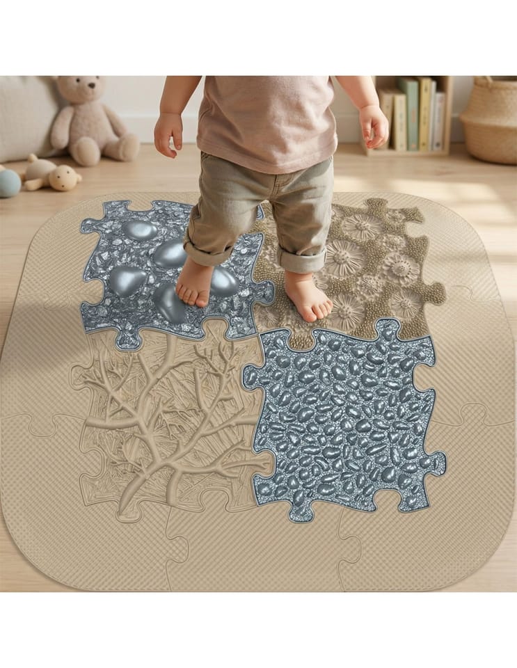 Zestaw mat sensorycznych od Woopie! to unikalna kompozycja struktur, która przenosi kojącą atmosferę profesjonalnego salonu SPA prosto do Twojego salonu. Dzięki precyzyjnie dobranym wypustkom, każde stąpnięcie zamienia się w odprężający masaż redukujący napięcie mięśniowe. To nie tylko doskonałe narzędzie do domowej rehabilitacji i korygowania postawy, ale przede wszystkim fascynująca, sensoryczna przygoda, która uczy dziecko rozpoznawania różnorodnych bodźców dotykowych. Modułowy system puzzli pozwala na kreatywne budowanie własnych ścieżek zdrowia, angażując całą rodzinę do wspólnej, prozdrowotnej zabawy. Wybierz zestaw SPA, by połączyć codzienną dbałość o zdrowe stopy z chwilą błogiego relaksu i radosnej nauki poprzez doświadczanie!