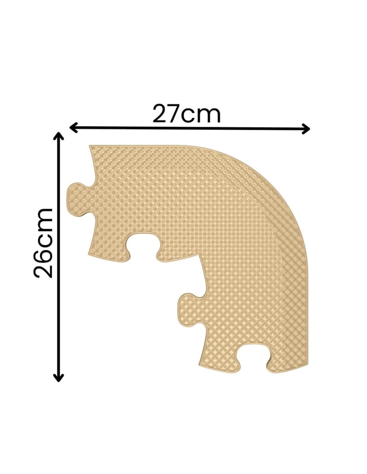 Wymiary jednej maty: 29,79 cm x 29,79 cmWymiary prostego wykończenia: 28,27 cm x 14,89 cmWymiary narożnego wykończenia: 25,87 cm x 27,39 cmCałkowity rozmiar po rozłożeniu: 74,5 cm x 74,5 cm