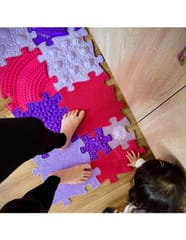 Zestaw mat sensorycznych Pink od marki Woopie!, to urocza podróż do krainy pastelowych barw, która zamieni dziecięcy pokój w profesjonalną i bezpieczną ścieżkę zdrowia. Dzięki starannie dobranym strukturom, każda domowa zabawa staje się skutecznym treningiem mięśni stóp oraz profilaktyką płaskostopia. Miękkie i twarde maty uczą malucha rozpoznawania zróżnicowanych bodźców dotykowych, pobudzając zmysły i wyobraźnię w najbardziej przyjazny sposób. Intuicyjny system puzzli pozwala na dowolne konfigurowanie kolorowych tras, co sprawia, że nauka stabilnego kroku staje się fascynującym wyzwaniem pełnym uśmiechu. Podaruj swojej małej odkrywczyni zdrowie i radość, wybierając zestaw, który w genialny sposób łączy magię zabawy z merytorycznym wsparciem fizjoterapeutycznym!
