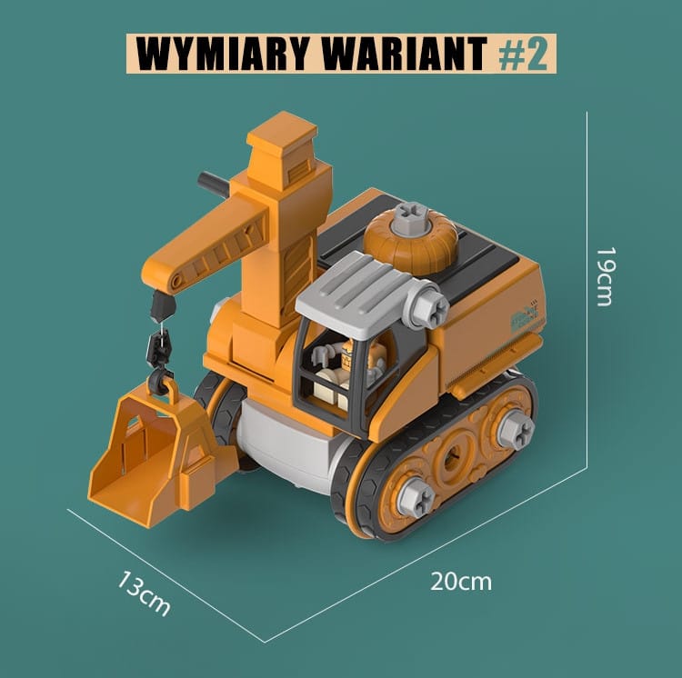 - - akcesoria m.in.: figurka budowlańca, gruz czy drewno,