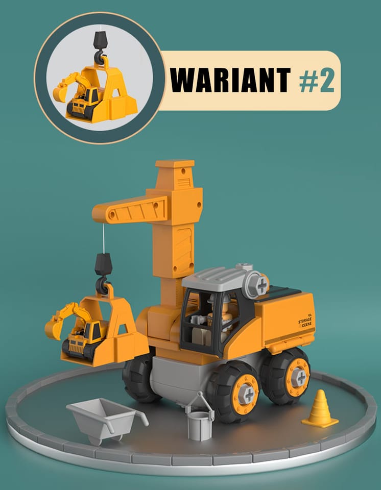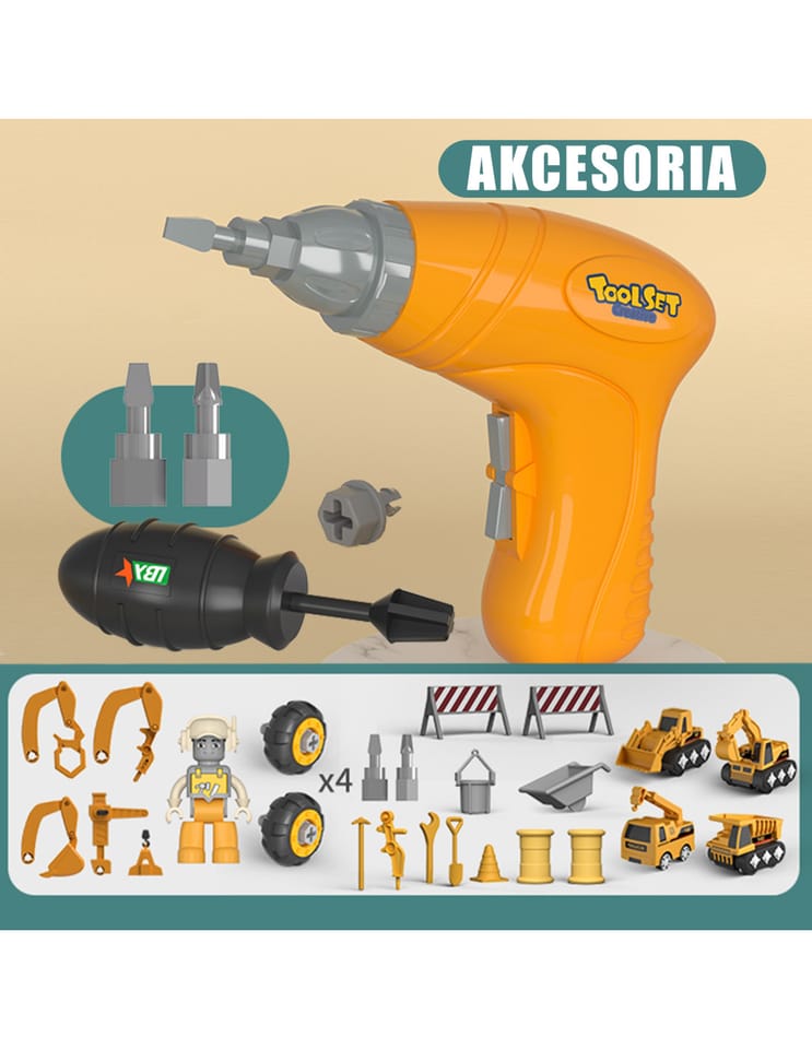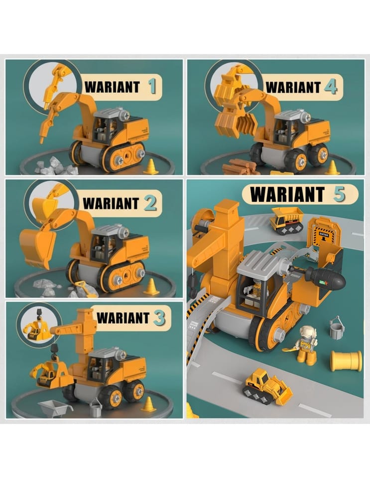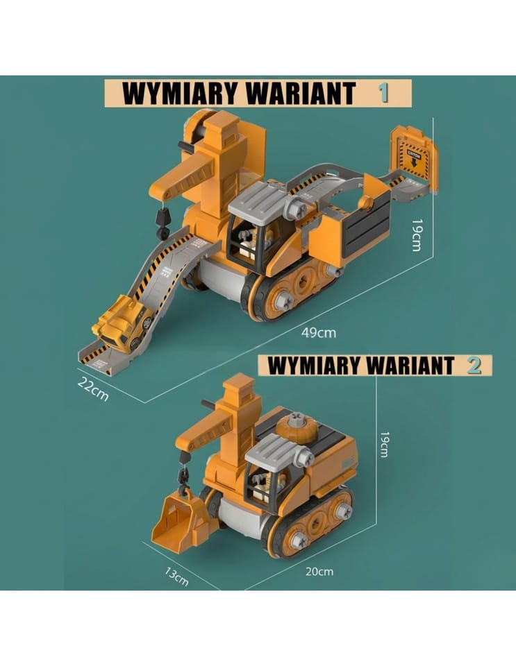 Mega Plac Budowy 5w1 od marki WOOPIE to kompletny zestaw dla każdego miłośnika ekstremalnych pojazdów! Zabawa polega na skręceniu przy pomocy wiertarki lub śrubokręta jednego z 5 rodzajów pojazdów i na zabawie w budowę przy użyciu wielu akcesoriów m.in. figurki budowlańca, 4 mini pojazdów lub gruzu. Zestaw jest dopracowany do najmniejszego szczegółu oraz dodatkowo większość elementów konstrukcji pojazdów jest ruchoma np. daszek koparki. W trybie "Placu Budowy z Torem", dziecko może wystrzelić jeden z 4 mini pojazdów z wyrzutni na początku toru. Zabawka poza kreatywnością i wyobraźnią rozwija, również zdolności manualne dziecka tzw. "małą motorykę", dzięki zabawie w skręcanie. Zestawem można bawić się wszędzie a nawet w piaskownicy!