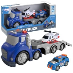Laweta Police Truck z serii CITY TRUCK pozwoli Twojemu dziecku przenieść się w świat policyjnych przygód i wcielić się w rolę stróża prawa. Wykonany z wysokiej jakości materiałów zestaw składa się z dużej niebieskiej ciężarówki z lawetą, helikoptera oraz samochodu terenowego. Efekty świetlne i dźwiękowe sprawią, że zabawa stanie się jeszcze bardziej realistyczna i emocjonująca. To idealny zestaw do kreatywnej zabawy w domowy komisariat lub akcje ratunkowe.
