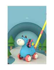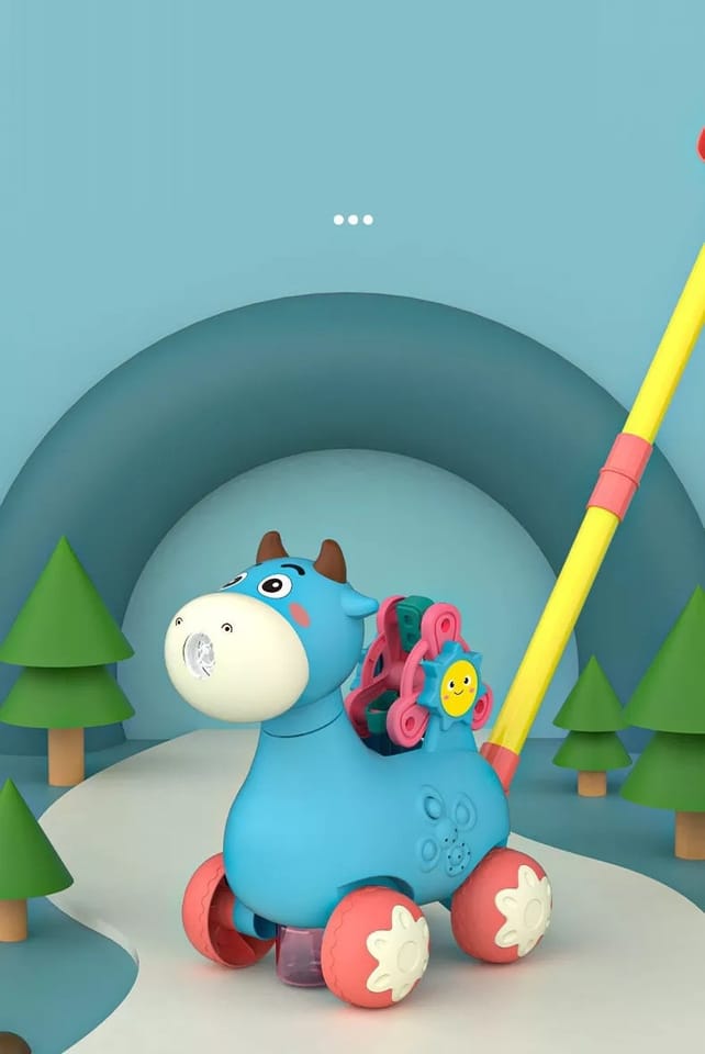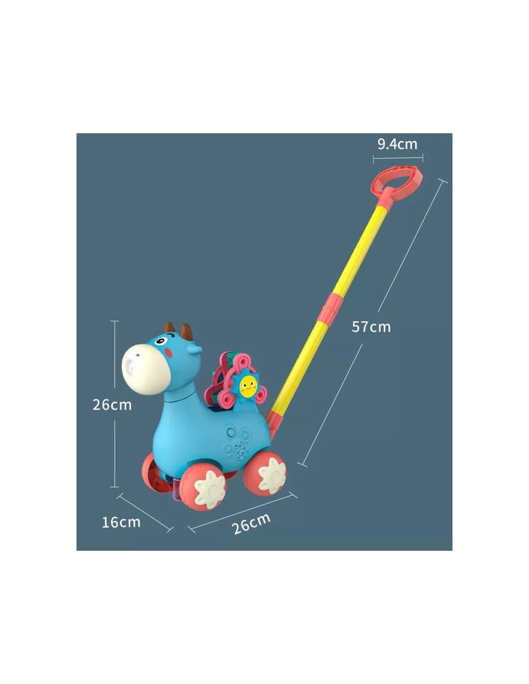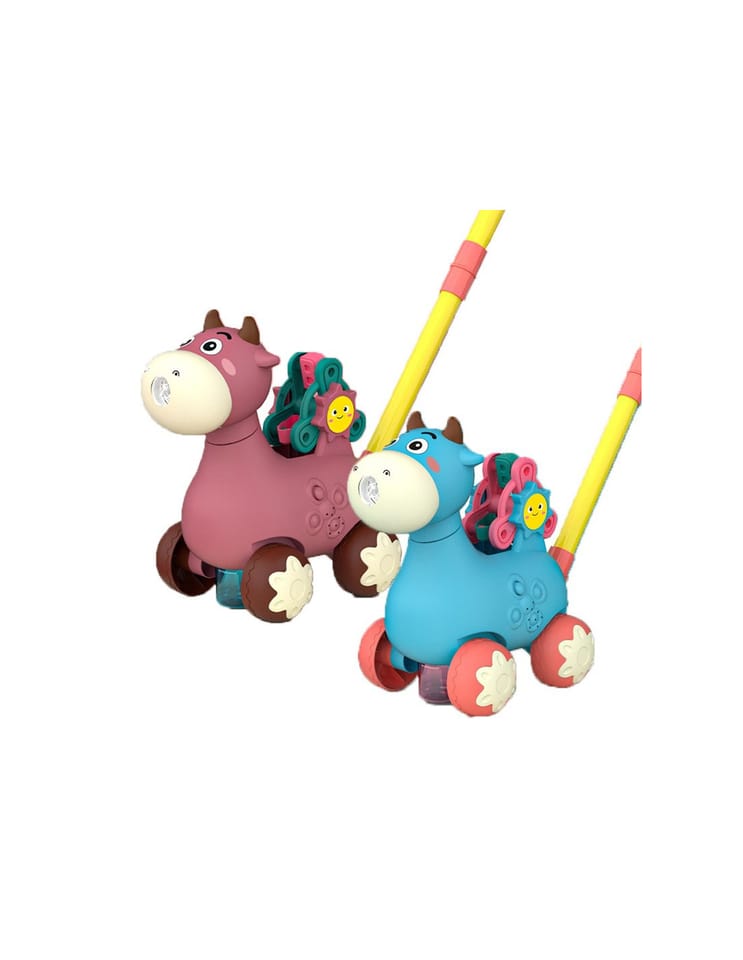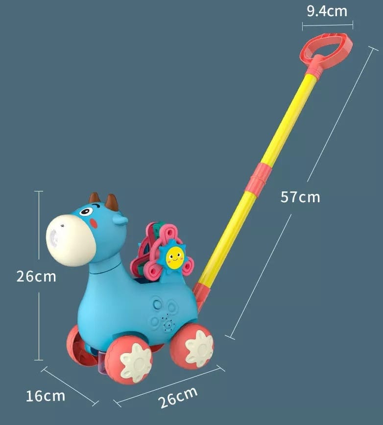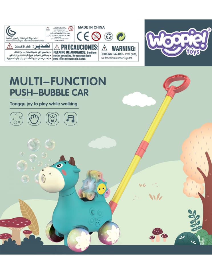 Pchacz Krówka Niebieska od marki WOOPIE będzie idealnym narzędziem do nauki dla Twojego dziecka. Dzieci mogą ćwiczyć chodzenie, prowadząc przed sobą ulubioną krówkę. Zabawka do pchania ma wiele funkcji, które zachwyca dziecko. Krówka puszcza bańki mydlane - wystarczy wkręcić pojemniczek z płynem od spodu (w zestawie 2 pojemniki). Bańki wychodzą z buzi krówki. Posiada kołowrotek z literami alfabetu (A, B i C) do nauki. Wszystkiemu towarzyszą cudowne melodie, które można włączyć i wyłączyć guzikiem. Zabawka pozwoli rozwinąć koordynacje dziecka, zdolności motoryczne, umiejętności chodzenia i pozwoli postawić pierwsze kroki w nauce alfabetu.