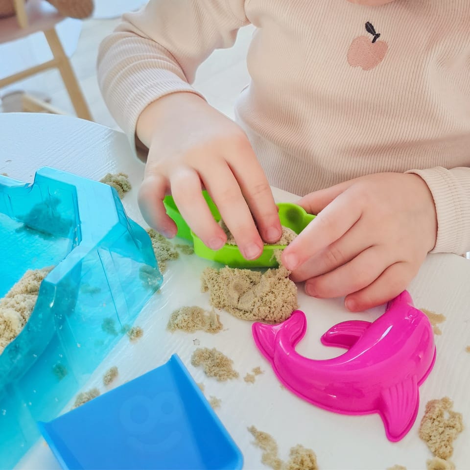 - - Miękki i sensoryczny piasek przyjemny w dotyku, łatwy do formowania i nie wysycha