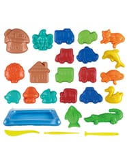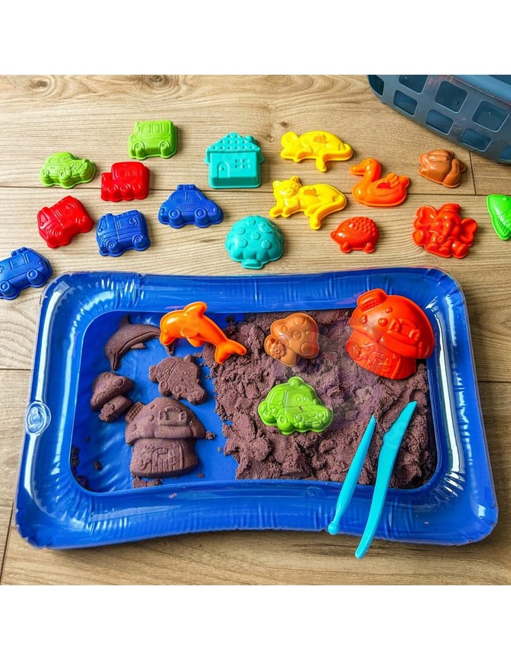 - - Duży wybór foremek (m.in. zwierzęta: słoń, delfin, aligator, ryba; pojazdy: samochód, pociąg; budynki: dom, grzyb)