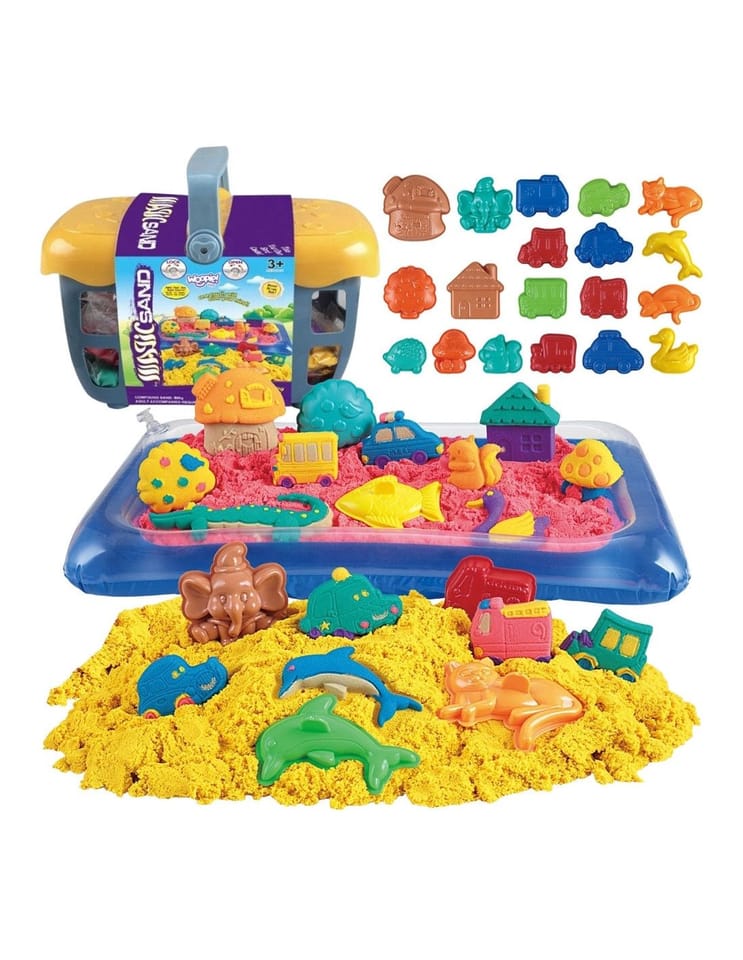 Przenieś plażę do swojego domu, bez piasku roznoszącego się po całym mieszkaniu! Przedstawiamy Magiczny Piasek Kinetyczny w praktycznym koszyku od marki Woopie! Idealny zestaw do kreatywnej i sensorycznej zabawy dla dzieci. Ten niezwykły piasek nigdy nie wysycha, jest miękki w dotyku i łatwo się formuje, co pozwala na tworzenie niezliczonych kształtów i budowli. Dzięki bogactwu foremek i akcesoriów, Twoje dziecko będzie mogło rozwijać wyobraźnię i zdolności manualne, czerpiąc radość z czystej i bezpiecznej zabawy!