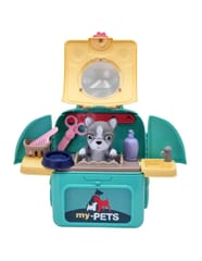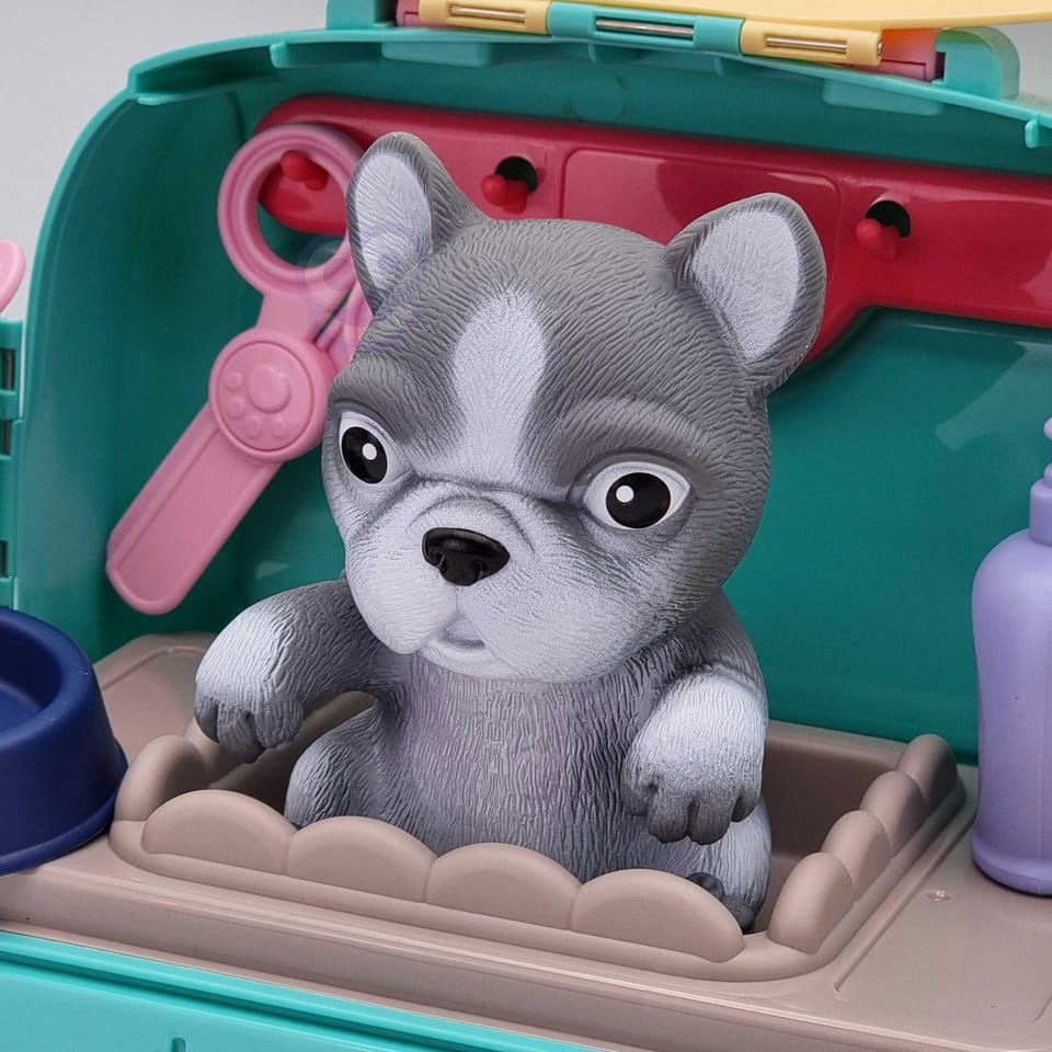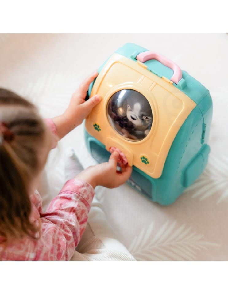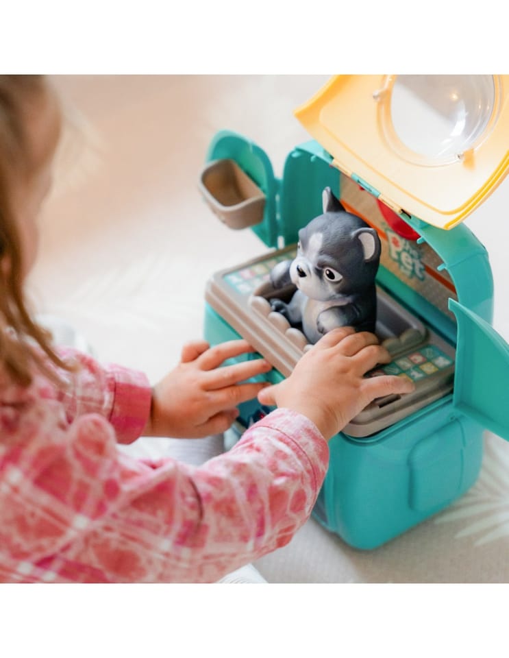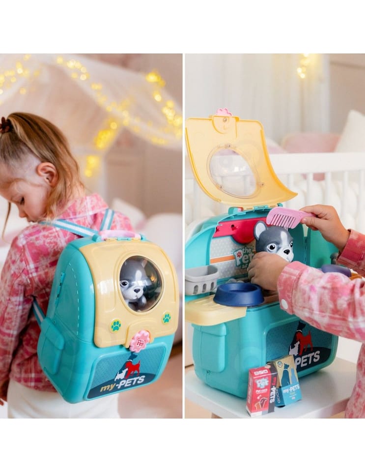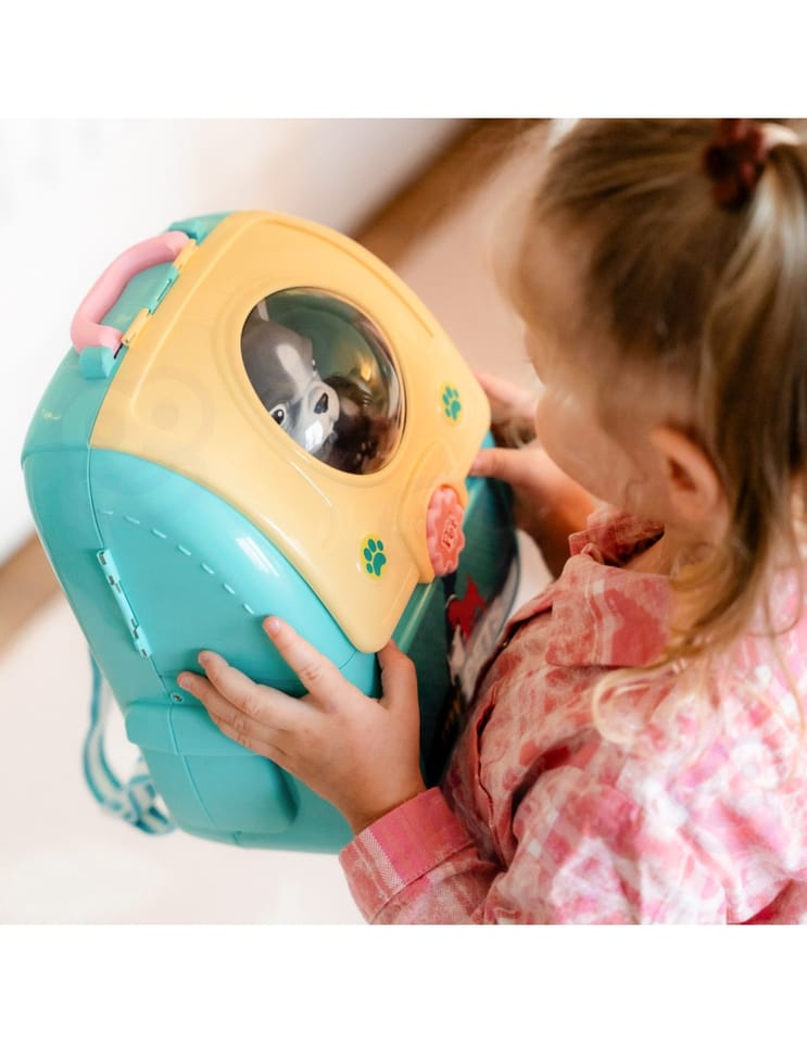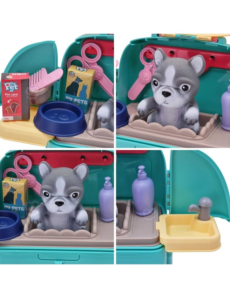 Przenośny Zestaw Pielęgnacyjny dla Pieska od marki WOOPIE pozwoli Twojemu dziecku zadbać o swojego ulubionego pupila. Możesz wszędzie zabrać swojego pieska w wygodnym przenośnym plecaku: w podróż, na plac zabaw czy do przedszkola. Plecak posiada uchwyt do podnoszenia oraz specjalne zamknięcie, które nie pozwoli otworzyć się kabinie podczas noszenia i zapewni maksymalne bezpieczeństwo zwierzakowi. Zestaw pielęgnacyjny 2w1 zawiera: figurkę pieska, plecak, pasek (do zakładania kabiny na plecy), miskę, nożyczki, grzebień, koszyk na akcesoria, 2 pudełeczka na karmę, szampon, zlew, kran, półka i wieszak. Zestaw zawiera wszystko co potrzebne do pielęgnacji pupila. Dziecko może umyć i nakarmić swojego pieska. Dziecko wcielając się w opiekuna lub weterynarza rozwija swoją wyobraźnie oraz poczucie empatii. Możliwe, że zabawka będzie początkiem do rozwinięcia pasji i drogi do zostania weterynarzem.