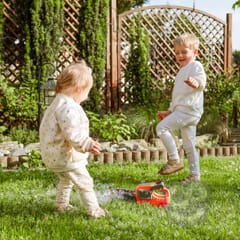 Pistolet do Robienia Baniek Mydlanych - Piła Łańcuchowa od marki WOOPIE to niezwykły gadżet, który przeniesie zabawę na zupełnie nowy poziom. To nie tylko zabawka, ale prawdziwa atrakcja, która sprawdzi się na każdej imprezie, w ogrodzie czy podczas zwykłego popołudnia spędzonego na świeżym powietrzu. Dzięki swojej innowacyjnej konstrukcji i wyjątkowym efektom wizualnym, z pewnością stanie się ulubionym gadżetem zarówno dzieci, jak i dorosłych, dostarczając mnóstwo radości i niezapomnianych chwil. Nakładka "ostrza" piły jest zdejmowana, co oznacza, że w mgnieniu oka można przekształcić ją z piły łańcuchowej w stylową maszynę do baniek. Prawdziwa magia zaczyna się, gdy włączamy pistolet. Otwór, z którego wylatują bańki, nie tylko się świeci, ale także obraca się o 360 stopni. Ten ruch tworzy niesamowity efekt, potęgując wizualne doznania i sprawiając, że bańki unoszą się w powietrzu w najbardziej nieoczekiwane strony.