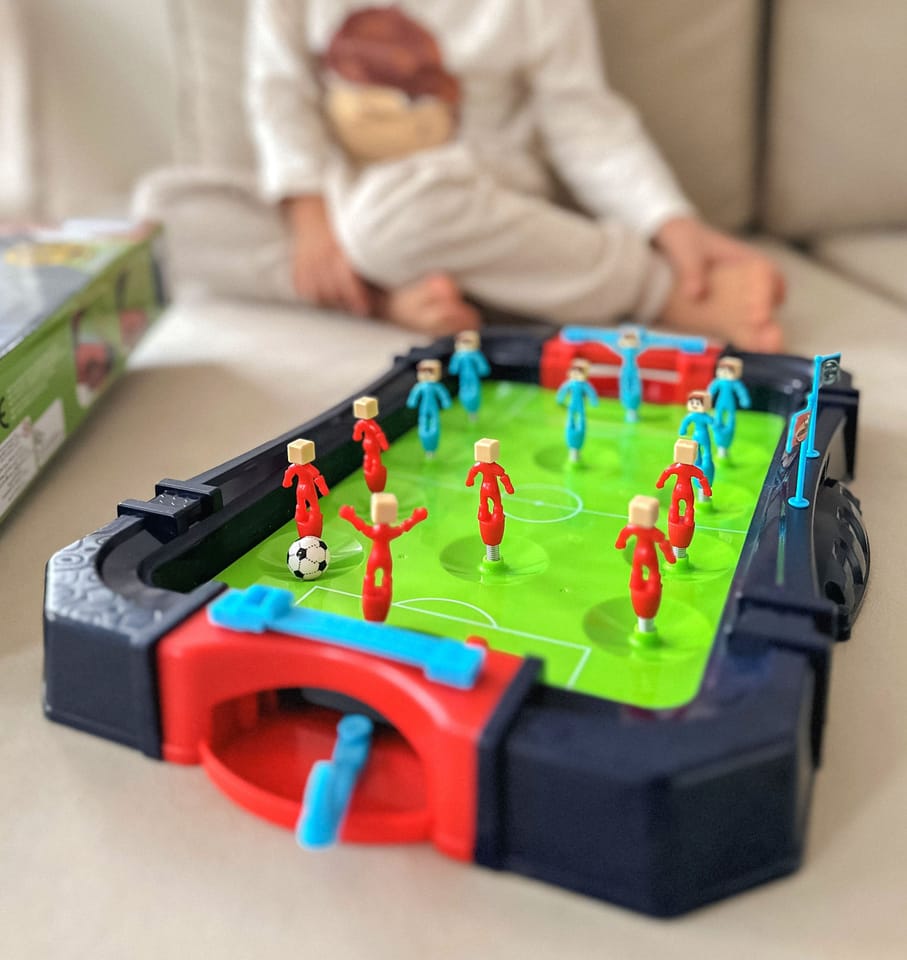 Gra MINI PIŁKA NOŻNA to gra dla dwóch graczy uwielbiających piłkę nożną. Gra prezentowana jest w formie realistycznego boiska z dwoma bramkami. Gra idealnie sprawdzi się na spotkaniach rodzinnych i przyjacielskich. Pomaga budować relacje z rodziną i przyjaciółmi. MINI PIŁKA NOŻNA pomaga rozwijać umysł, refleks, celność oraz skupienie Twojego dziecka. Gra idealnie sprawdzi się jako prezent urodzinowy lub świąteczny dla dziecka.