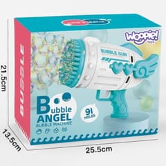 - Łatwy w użyciu i ładowaniu- ergonomiczny uchwyt pistoletu zapewnia wygodne trzymanie i precyzyjne celowanie. Wystarczy napełnić pojemnik płynem i nacisnąć spust, aby rozpocząć pokaz baniek.
