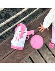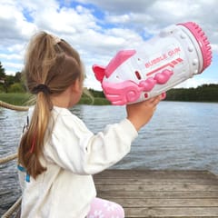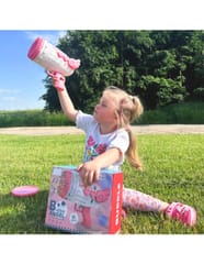- Wydajny mechanizm- dzięki sprawnej konstrukcji, pistolet równomiernie uwalnia płyn do baniek przez wszystkie otwory, co zapewnia spektakularny efekt baniek w powietrzu.